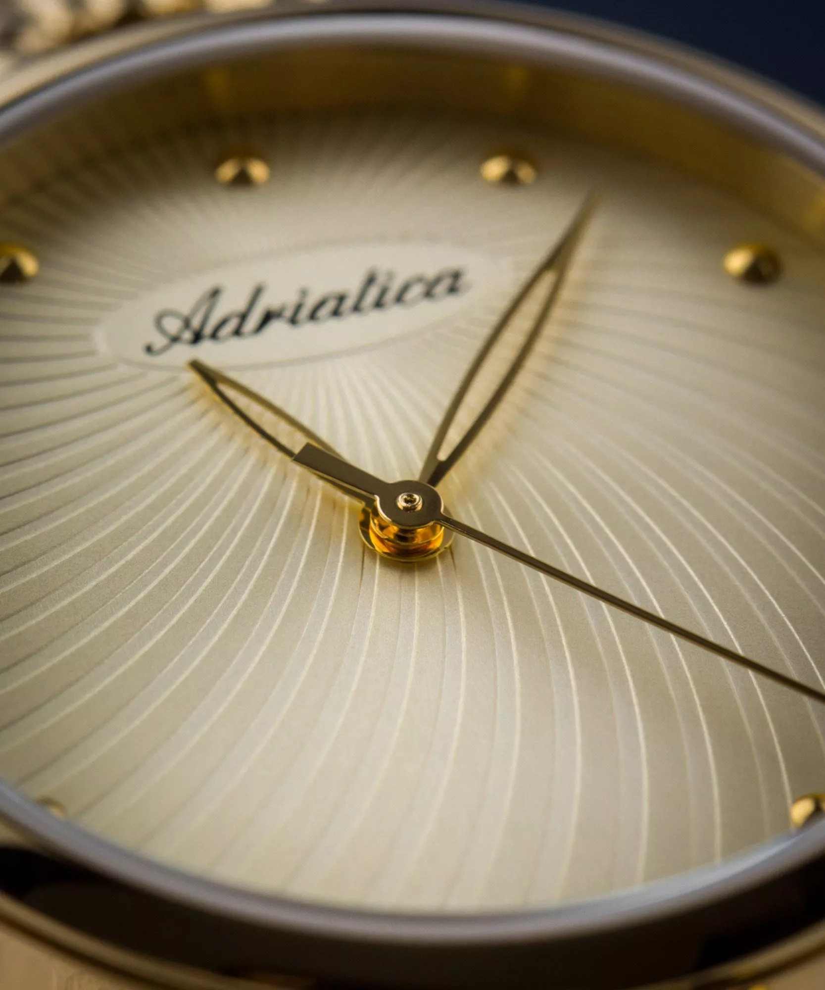 Изысканные женские часы Adriatica A3822.1141Q, произведенные в Швейцарии. Эти часы идеально подойдут для женщин, ценящих элегантность и стиль. Часы оснащены надежным кварцевым механизмом Ronda 763, обеспечивающим точность и долговечность. Корпус диаметром 30 мм и толщиной 7 мм выполнен из стали с PVDPVDУльтратонкое покрытие наносится в технике вакуумного напыления, сочетает в себе нитрид титана особой прочности со слоем золота или оксида хрома. Несёт в себе декоративную или защитную функцию. покрытием, что придает часам современный и утонченный вид. Золотистый циферблат, украшенный точками, придает дополнительную изысканность. Минеральное стеклоМинеральное стеклоМинеральное стекло представляет собой искусственно выращенный минерал кварца. Такое стекло отличается особой устойчивостью к повреждениям и царапинам. Уступает по некоторым качествам сапфировому стеклу. защищает циферблат от повреждений, а водозащита уровня 30WR позволяет использовать часы в условиях легкой влажности. Стальной браслет с PVDPVDУльтратонкое покрытие наносится в технике вакуумного напыления, сочетает в себе нитрид титана особой прочности со слоем золота или оксида хрома. Несёт в себе декоративную или защитную функцию. покрытием золотистого цвета с ювелирной застежкой обеспечивает комфортное ношение и надежную фиксацию на запястье.