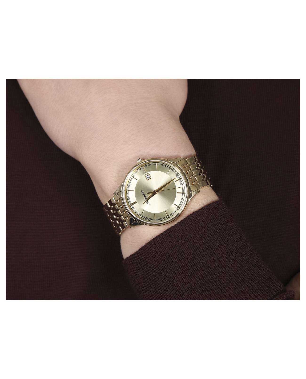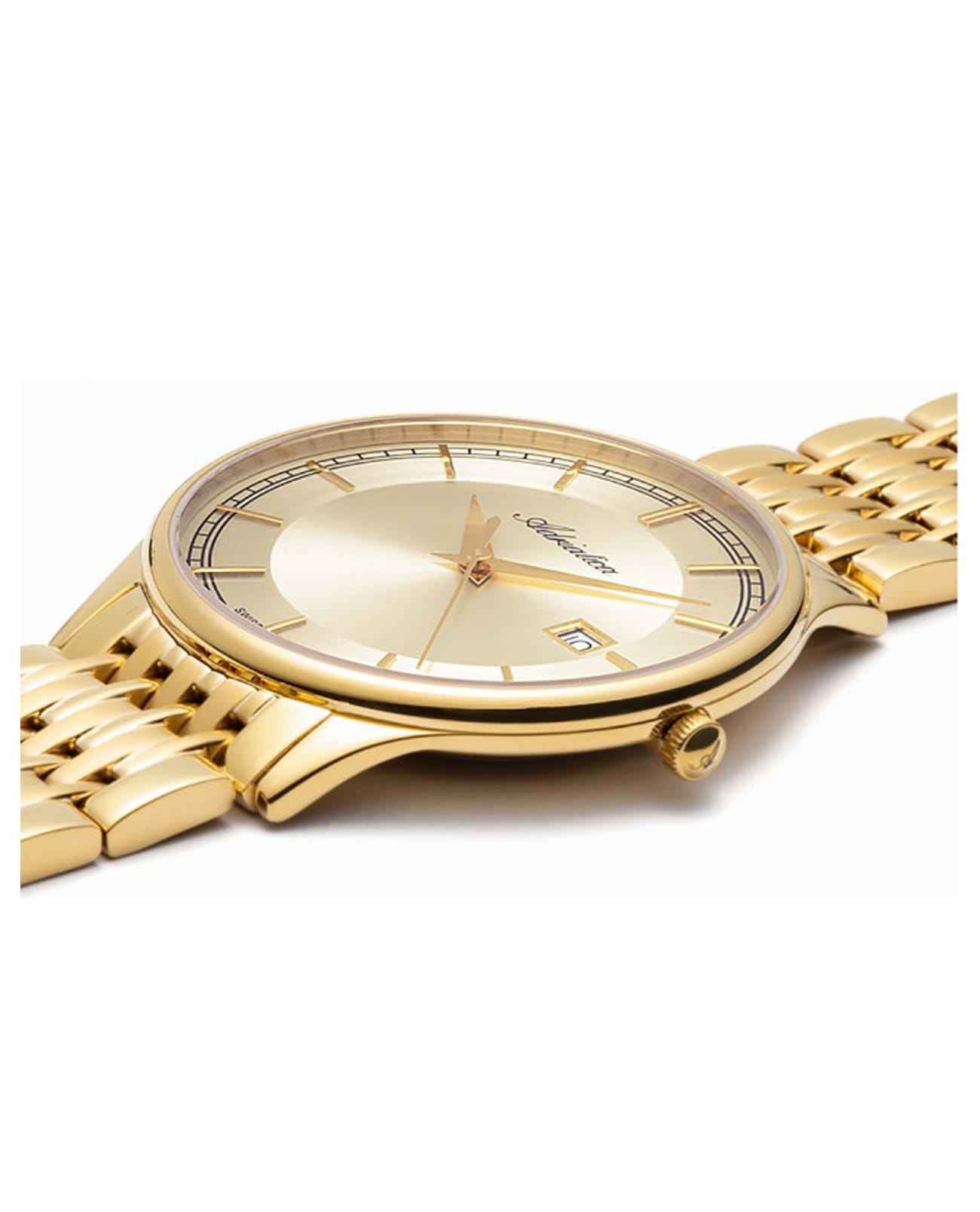 Мужские швейцарские часы Adriatica Premiere A8315.1111Q, кварцевый механизм с высокой точностью. Сапфировое стекло устойчивое к появлению царапин, обладающее высокой прозрачностью. Класс водозащиты: 50 метров, позволит защитить корпус от случайных брызг или капель дождя. Корпус часов изготовлен из стали, золотистого цвета.