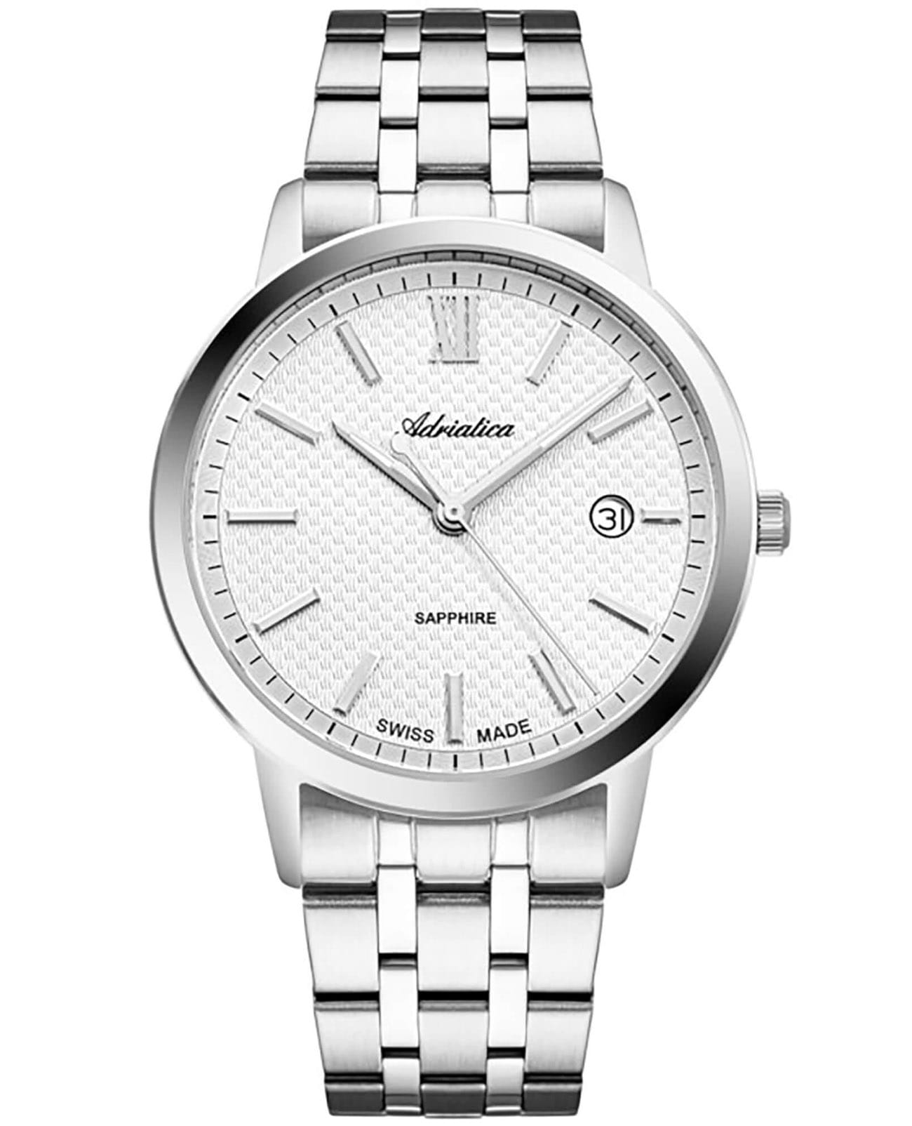 Мужские швейцарские кварцевые часы Adriatica A8333.5163Q, кварцевый механизм с высокой точностью. Сапфировое стеклоСапфировое стеклоПрочный и надёжный материал из кристалла сапфира синтетического происхождения, характеризующийся особой твёрдостью и устойчивостью к царапинам и повреждениям. устойчивое к появлению царапин, обладающее высокой прозрачностью. Класс водозащиты: 30 метров, позволит защитить корпус от случайных брызг или капель дождя. Корпус часов изготовлен из стали. Стальной браслет на раскладной застёжкеРаскладная застёжкаТакой тип застёжки используется только на браслетах из металла. Она никогда не раскрывается полностью, происходит разделение на 2 и более частей. Раскладывающая застёжка снизит вероятность потери часов к минимуму.. Стрелки с люминесцентным покрытиемЛюминесцентное покрытиеПозволяет считывать показания времени в темноте. Производители наносят на стрелки, часовые индексы, безель или поверхность циферблата светонакопительный состав, дающий холодное свечение.. Окошко даты находится в положении 3 часа.
