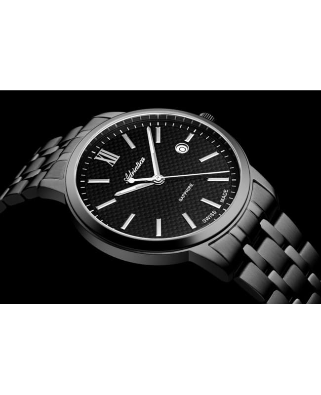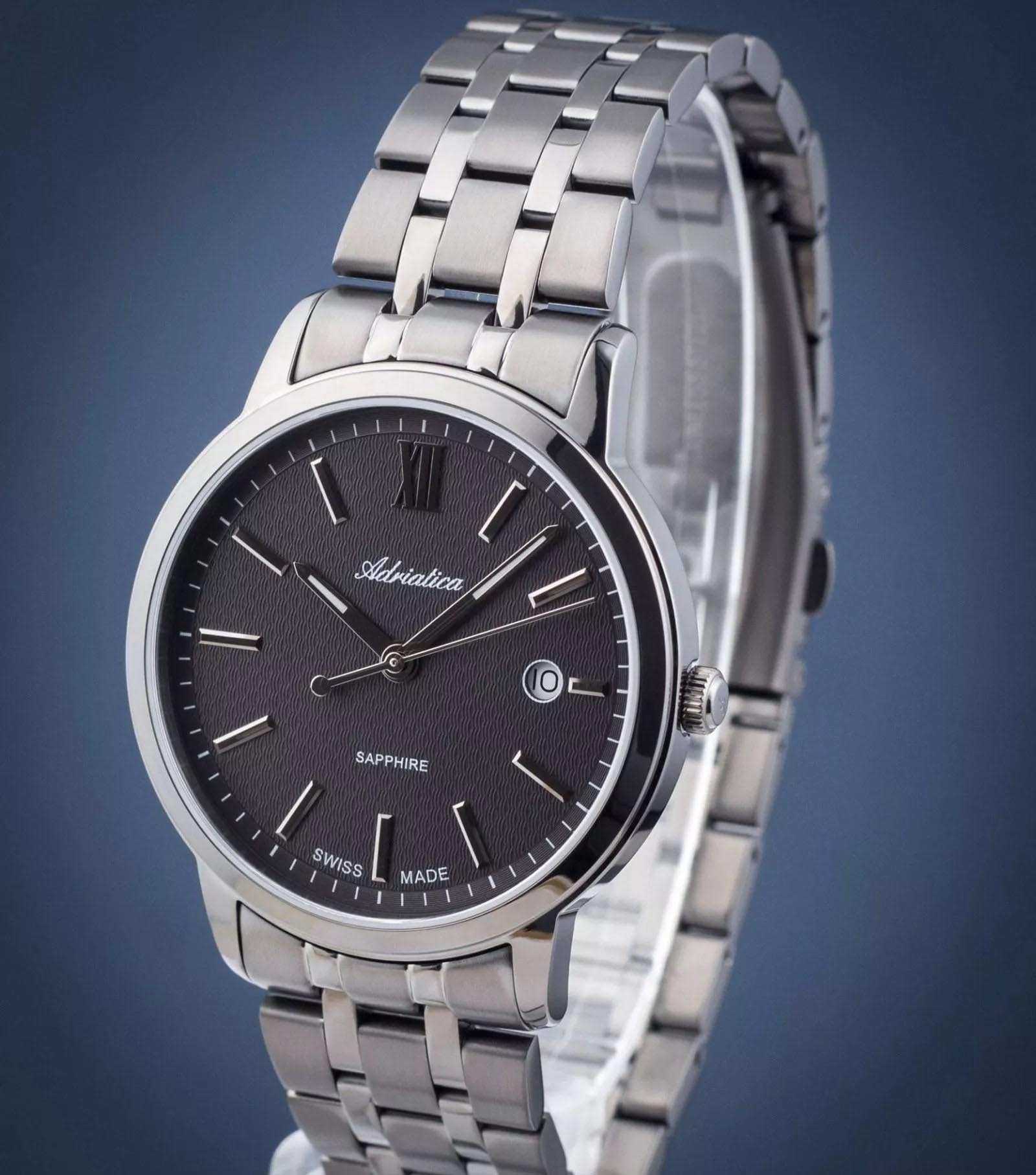 Мужские швейцарские кварцевые часы Adriatica A8333.S166Q, кварцевый механизм с высокой точностью. Сапфировое стеклоСапфировое стеклоПрочный и надёжный материал из кристалла сапфира синтетического происхождения, характеризующийся особой твёрдостью и устойчивостью к царапинам и повреждениям. устойчивое к появлению царапин, обладающее высокой прозрачностью. Класс водозащиты: 30 метров, позволит защитить корпус от случайных брызг или капель дождя. Корпус часов изготовлен из стали с PVD-покрытиемPVDУльтратонкое покрытие наносится в технике вакуумного напыления, сочетает в себе нитрид титана особой прочности со слоем золота или оксида хрома. Несёт в себе декоративную или защитную функцию.. Стальной браслет на раскладной застёжкеРаскладная застёжкаТакой тип застёжки используется только на браслетах из металла. Она никогда не раскрывается полностью, происходит разделение на 2 и более частей. Раскладывающая застёжка снизит вероятность потери часов к минимуму. с PVD-покрытиемPVDУльтратонкое покрытие наносится в технике вакуумного напыления, сочетает в себе нитрид титана особой прочности со слоем золота или оксида хрома. Несёт в себе декоративную или защитную функцию.. Стрелки с люминесцентным покрытиемЛюминесцентное покрытиеПозволяет считывать показания времени в темноте. Производители наносят на стрелки, часовые индексы, безель или поверхность циферблата светонакопительный состав, дающий холодное свечение.. Окошко даты находится в положении 3 часа.