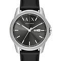 Мужские наручные часы с минеральным стекломМинеральное стеклоМинеральное стекло представляет собой искусственно выращенный минерал кварца. Такое стекло отличается особой устойчивостью к повреждениям и царапинам. Уступает по некоторым качествам сапфировому стеклу. Armani Exchange Banks AX1735, кварцевый механизм с высокой точностью. Класс водозащиты: 50 метров, позволит защитить корпус от случайных брызг или капель дождя. Корпус часов изготовлен из стали. Кожаный ремешок на стандартной застёжке. Метки в виде штрихов. Окошко даты в положении 3 часа. Заводная головка с защитой.