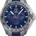 Циферблат сложной структуры — с трёхзонным дизайн‑решением: крупная индикация даты, три субциферблата хронографа и широкие стрелки с люминесцентным покрытиемЛюминесцентное покрытиеПозволяет считывать показания времени в темноте. Производители наносят на стрелки, часовые индексы, безель или поверхность циферблата светонакопительный состав, дающий холодное свечение. обеспечивают мгновенное считывание информации. Обод корпуса украшен гравировкой «tachymetre», подчёркивающей спортивную тематику.