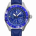 Циферблат отличается детальной функциональностью: в центре — крупные арабские цифры и стрелки, покрытые люминесцентным покрытиемЛюминесцентное покрытиеПозволяет считывать показания времени в темноте. Производители наносят на стрелки, часовые индексы, безель или поверхность циферблата светонакопительный состав, дающий холодное свечение., обеспечивающими мгновенное считывание времени даже в темноте. На «3 часах» — окошко даты, а индикатор второго часового пояса (GMT) удобно расположен на «9 часах». С внешней стороны — вращающийся безельБезельВнешний ободок, закрепляющий стекло. В спортивных часах так называется поворотное кольцо с делениями на циферблате, выполняет роль таймера – замеряет отрезки времени на шкале. Неподвижный безель – элемент декора. Однонаправленно вращающийся безель на дайверских часах позволяет фиксировать моменты погружения и выныривания на поверхность. с PVD-покрытиемPVDУльтратонкое покрытие наносится в технике вакуумного напыления, сочетает в себе нитрид титана особой прочности со слоем золота или оксида хрома. Несёт в себе декоративную или защитную функцию. с насечкой и градусной шкалой для секунд — идеален для расчёта времени пути или времени прибытия .