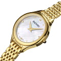 Женские часы Balimain de Balmain B3910.33.85 кварцевый механизм с высокой точностью. Сапфировое стеклоСапфировое стеклоПрочный и надёжный материал из кристалла сапфира синтетического происхождения, характеризующийся особой твёрдостью и устойчивостью к царапинам и повреждениям. устойчивое к появлению царапин, обладающее высокой прозрачностью. Корпус изготовлен из нержавеющей стали PVD-покрытиемPVDУльтратонкое покрытие наносится в технике вакуумного напыления, сочетает в себе нитрид титана особой прочности со слоем золота или оксида хрома. Несёт в себе декоративную или защитную функцию.. Класс водозащиты: 50 метров, позволит защитить корпус от случайных брызг или капель дождя. Стальной браслет с PVD-покрытиемPVDУльтратонкое покрытие наносится в технике вакуумного напыления, сочетает в себе нитрид титана особой прочности со слоем золота или оксида хрома. Несёт в себе декоративную или защитную функцию.. на застёжке «бабочка» с кнопкамиЗастёжка "бабочка"Такой вид застёжки дополняется предохранителями, помогающими избежать случайного раскрытия браслета. Обладают изящным исполнением. . БезельБезельВнешний ободок, закрепляющий стекло. В спортивных часах так называется поворотное кольцо с делениями на циферблате, выполняет роль таймера – замеряет отрезки времени на шкале. Неподвижный безель – элемент декора. Однонаправленно вращающийся безель на дайверских часах позволяет фиксировать моменты погружения и выныривания на поверхность. с PVD-покрытиемPVDУльтратонкое покрытие наносится в технике вакуумного напыления, сочетает в себе нитрид титана особой прочности со слоем золота или оксида хрома. Несёт в себе декоративную или защитную функцию..