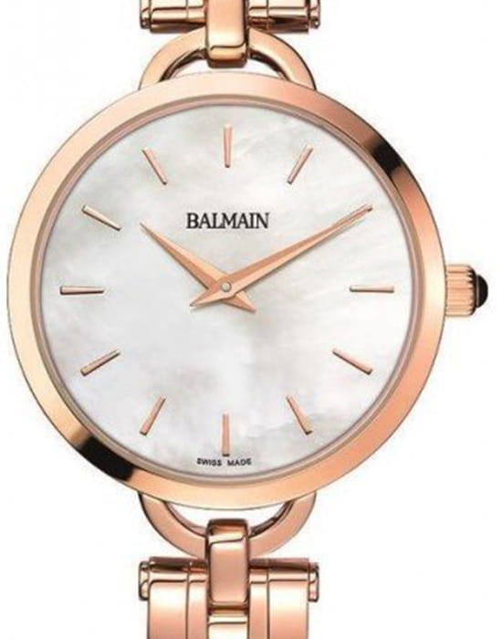 Женские часы Balmain Orithia II B4779.33.86 кварцевый механизм с высокой точностью. Сапфировое стеклоСапфировое стеклоПрочный и надёжный материал из кристалла сапфира синтетического происхождения, характеризующийся особой твёрдостью и устойчивостью к царапинам и повреждениям. устойчивое к появлению царапин, обладающее высокой прозрачностью. Корпус изготовлен из нержавеющей стали PVD-покрытиемPVDУльтратонкое покрытие наносится в технике вакуумного напыления, сочетает в себе нитрид титана особой прочности со слоем золота или оксида хрома. Несёт в себе декоративную или защитную функцию.. Класс водозащиты: 50 метров, позволит защитить корпус от случайных брызг или капель дождя. Стальной браслет с PVD-покрытиемPVDУльтратонкое покрытие наносится в технике вакуумного напыления, сочетает в себе нитрид титана особой прочности со слоем золота или оксида хрома. Несёт в себе декоративную или защитную функцию.. на застёжке «бабочка» с кнопкамиЗастёжка "бабочка"Такой вид застёжки дополняется предохранителями, помогающими избежать случайного раскрытия браслета. Обладают изящным исполнением. .