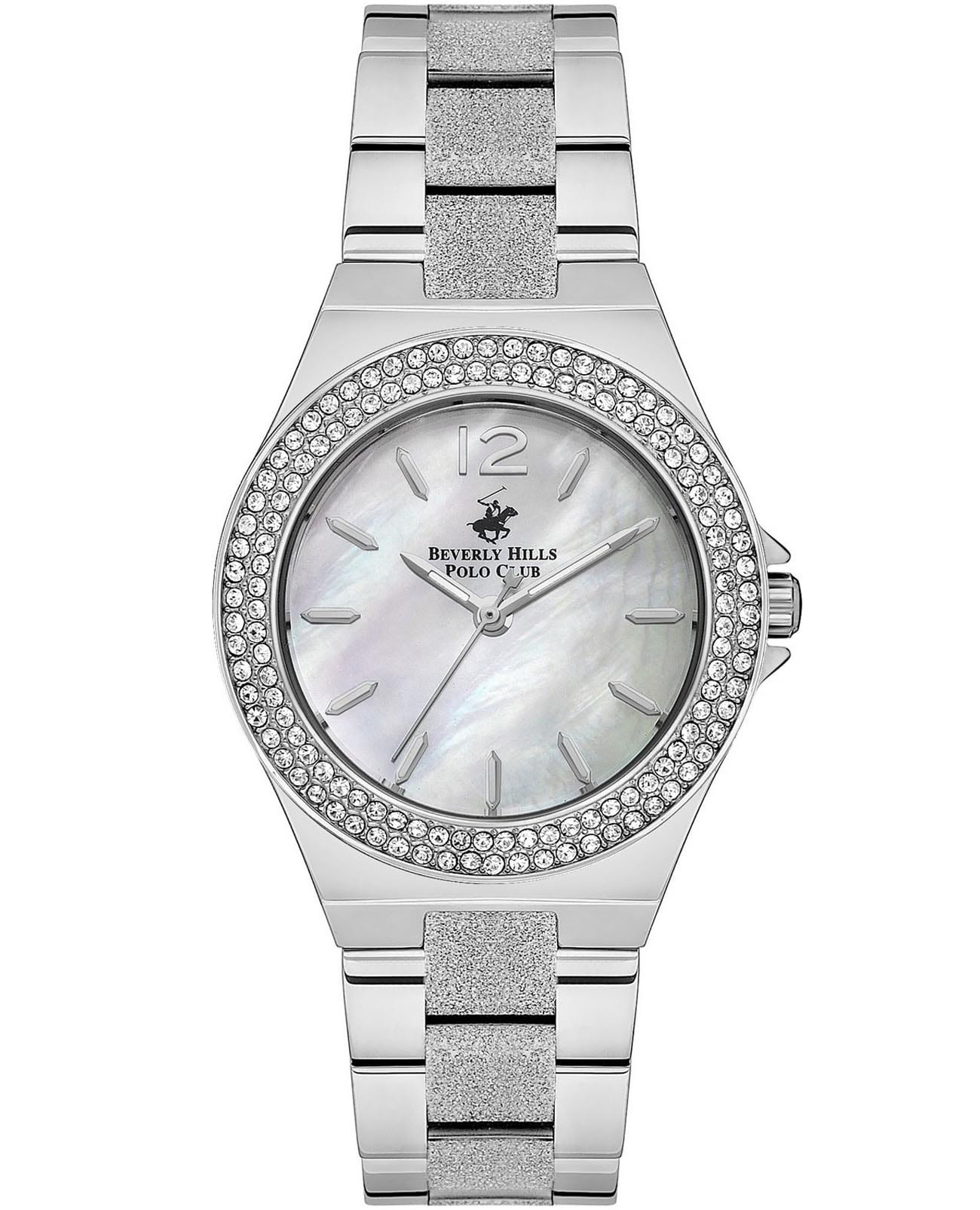 Женские часы Beverly Hills Polo BP3591X.320 с надёжным кварцевым механизмом. Минеральное стеклоМинеральное стеклоМинеральное стекло представляет собой искусственно выращенный минерал кварца. Такое стекло отличается особой устойчивостью к повреждениям и царапинам. Уступает по некоторым качествам сапфировому стеклу. устойчивое к появлению царапин, обладающее высокой прозрачностью. Класс водозащиты: 50 метров, позволит защитить корпус от случайных брызг или капель дождя. Корпус и браслет часов изготовлены из стали. Стальной браслет на раскладной застёжкеРаскладная застёжкаТакой тип застёжки используется только на браслетах из металла. Она никогда не раскрывается полностью, происходит разделение на 2 и более частей. Раскладывающая застёжка снизит вероятность потери часов к минимуму.. БезельБезельВнешний ободок, закрепляющий стекло. В спортивных часах так называется поворотное кольцо с делениями на циферблате, выполняет роль таймера – замеряет отрезки времени на шкале. Неподвижный безель – элемент декора. Однонаправленно вращающийся безель на дайверских часах позволяет фиксировать моменты погружения и выныривания на поверхность. инкрустирован кристаллами. Стрелки и метки с люминесцентным покрытиемЛюминесцентное покрытиеПозволяет считывать показания времени в темноте. Производители наносят на стрелки, часовые индексы, безель или поверхность циферблата светонакопительный состав, дающий холодное свечение..