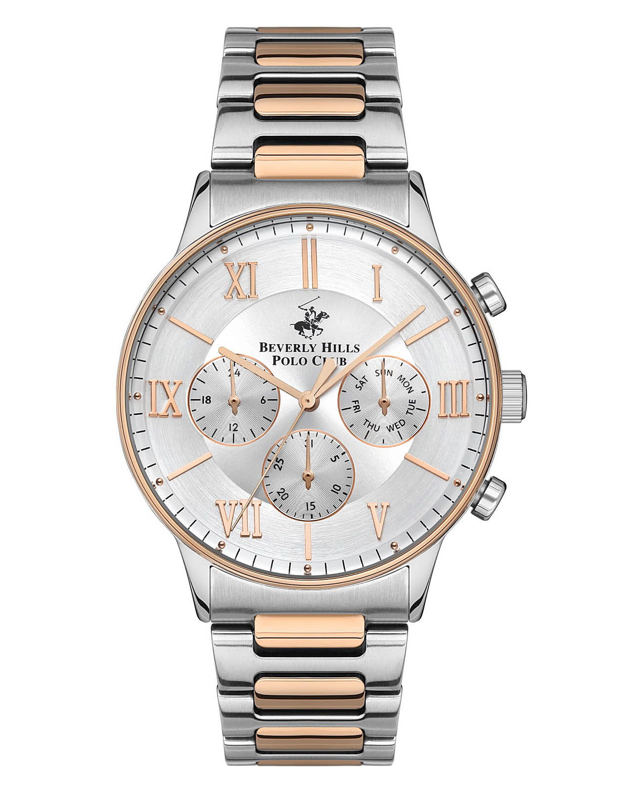 Американские мужские часы с минеральным стекломМинеральное стеклоМинеральное стекло представляет собой искусственно выращенный минерал кварца. Такое стекло отличается особой устойчивостью к повреждениям и царапинам. Уступает по некоторым качествам сапфировому стеклу. и Beverly Hills Polo Club BBP3314X.530, кварцевый механизм с высокой точностью. Класс водозащиты: 50 метров, позволит защитить корпус от случайных брызг или капель дождя. Корпус часов изготовлен из стали. Корпус изготовлен из нержавеющей стали с IP-покрытиемIP-покрытиеМетод ионного напыления. Демонстрирует повышенную устойчивость к истиранию, окислению и химическим веществам. Под воздействием высокого давления и температуры около 1500°C молекулы металла надёжно соединяются с частицами корпуса часов.. Браслет с раскладной застёжкойРаскладная застёжкаТакой тип застёжки используется только на браслетах из металла. Она никогда не раскрывается полностью, происходит разделение на 2 и более частей. Раскладывающая застёжка снизит вероятность потери часов к минимуму..
