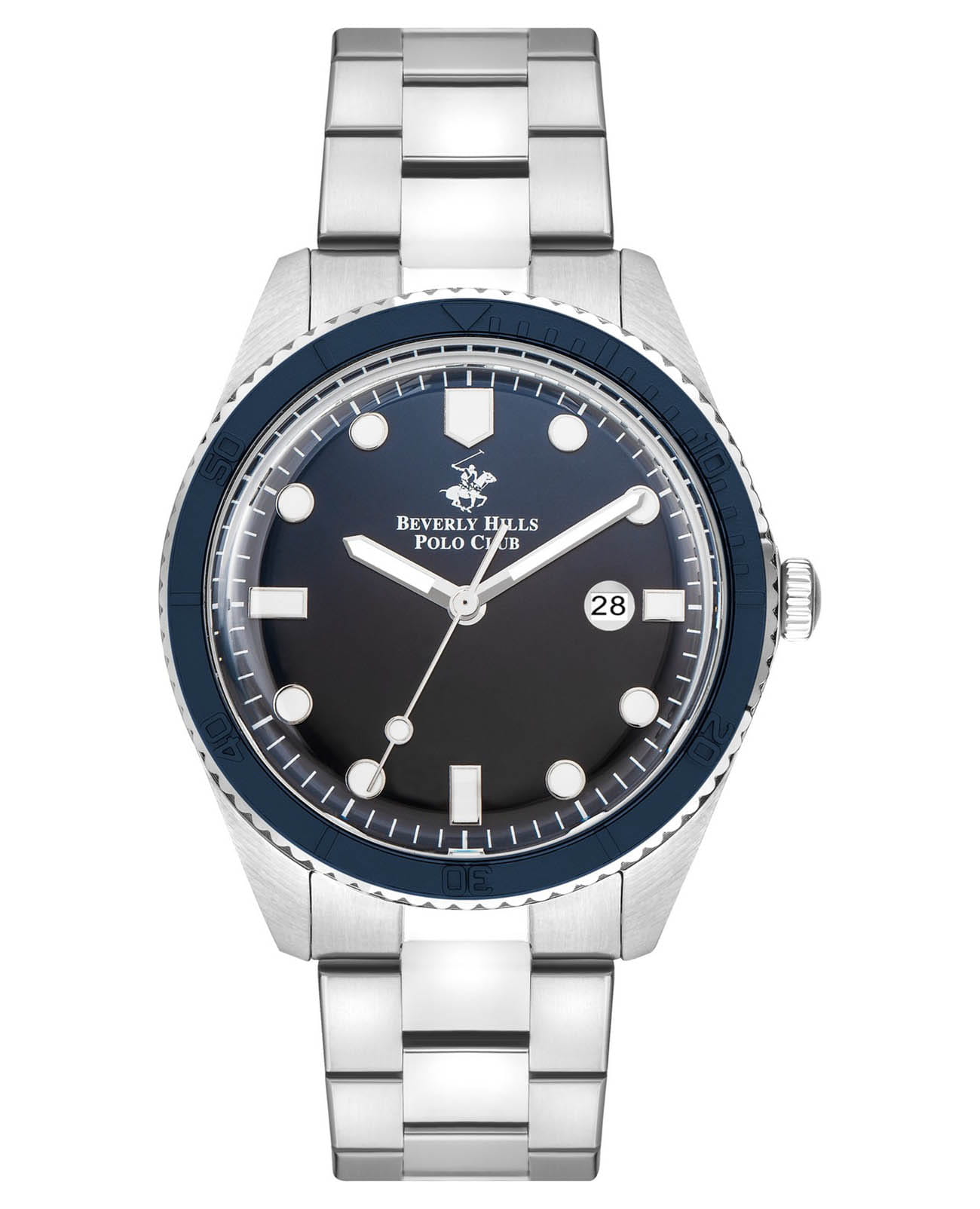 Американские мужские часы Beverly Hills Polo Club BP3407X.390 с минеральным стекломМинеральное стеклоМинеральное стекло представляет собой искусственно выращенный минерал кварца. Такое стекло отличается особой устойчивостью к повреждениям и царапинам. Уступает по некоторым качествам сапфировому стеклу., кварцевый механизм с высокой точностью. Корпус и браслет часов изготовлен из нержавеющей стали. Вращающийся безельБезельВнешний ободок, закрепляющий стекло. В спортивных часах так называется поворотное кольцо с делениями на циферблате, выполняет роль таймера – замеряет отрезки времени на шкале. Неподвижный безель – элемент декора. Однонаправленно вращающийся безель на дайверских часах позволяет фиксировать моменты погружения и выныривания на поверхность. из нержавеющей стали с IP-покрытиемIP-покрытиеМетод ионного напыления. Демонстрирует повышенную устойчивость к истиранию, окислению и химическим веществам. Под воздействием высокого давления и температуры около 1500°C молекулы металла надёжно соединяются с частицами корпуса часов.. Стрелки с люминесцентной подсветкойЛюминесцентное покрытиеПозволяет считывать показания времени в темноте. Производители наносят на стрелки, часовые индексы, безель или поверхность циферблата светонакопительный состав, дающий холодное свечение..Окошко даты в положении 3 часов. Класс водозащиты: 100 метров, позволит плавать, нырять и заниматься другими водными видами спорта. Стальной браслет на раскладной застёжкеРаскладная застёжкаТакой тип застёжки используется только на браслетах из металла. Она никогда не раскрывается полностью, происходит разделение на 2 и более частей. Раскладывающая застёжка снизит вероятность потери часов к минимуму..