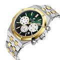 Браслет из стали с тем же IP-покрытиемIP-покрытиеМетод ионного напыления. Демонстрирует повышенную устойчивость к истиранию, окислению и химическим веществам. Под воздействием высокого давления и температуры около 1500°C молекулы металла надёжно соединяются с частицами корпуса часов. завершён застёжкой-бабочкой с кнопкамиЗастёжка "бабочка"Такой вид застёжки дополняется предохранителями, помогающими избежать случайного раскрытия браслета. Обладают изящным исполнением. — с кнопочным механизмом для удобного снятия. Водозащита до 50 м удовлетворит потребности как делового, так и активного образа жизни .