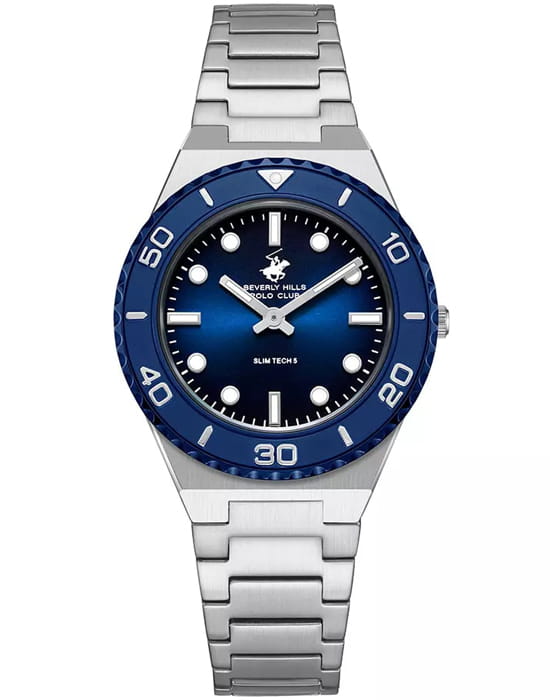 Американские часы Beverly Hills Polo Club BP3713X.390, кварцевый механизм с высокой точностью. Класс водозащиты: 50 метров, позволит защитить корпус от случайных брызг или капель дождя. Корпус часов изготовлен из стали. Стальной браслет на раскладной застёжкеРаскладная застёжкаТакой тип застёжки используется только на браслетах из металла. Она никогда не раскрывается полностью, происходит разделение на 2 и более частей. Раскладывающая застёжка снизит вероятность потери часов к минимуму.. Минеральное стеклоМинеральное стеклоМинеральное стекло представляет собой искусственно выращенный минерал кварца. Такое стекло отличается особой устойчивостью к повреждениям и царапинам. Уступает по некоторым качествам сапфировому стеклу. устойчивое к мелким механическим повреждениям. Неподвижный безельБезельВнешний ободок, закрепляющий стекло. В спортивных часах так называется поворотное кольцо с делениями на циферблате, выполняет роль таймера – замеряет отрезки времени на шкале. Неподвижный безель – элемент декора. Однонаправленно вращающийся безель на дайверских часах позволяет фиксировать моменты погружения и выныривания на поверхность. из нержавеющей стали с IP-покрытиемIP-покрытиеМетод ионного напыления. Демонстрирует повышенную устойчивость к истиранию, окислению и химическим веществам. Под воздействием высокого давления и температуры около 1500°C молекулы металла надёжно соединяются с частицами корпуса часов..