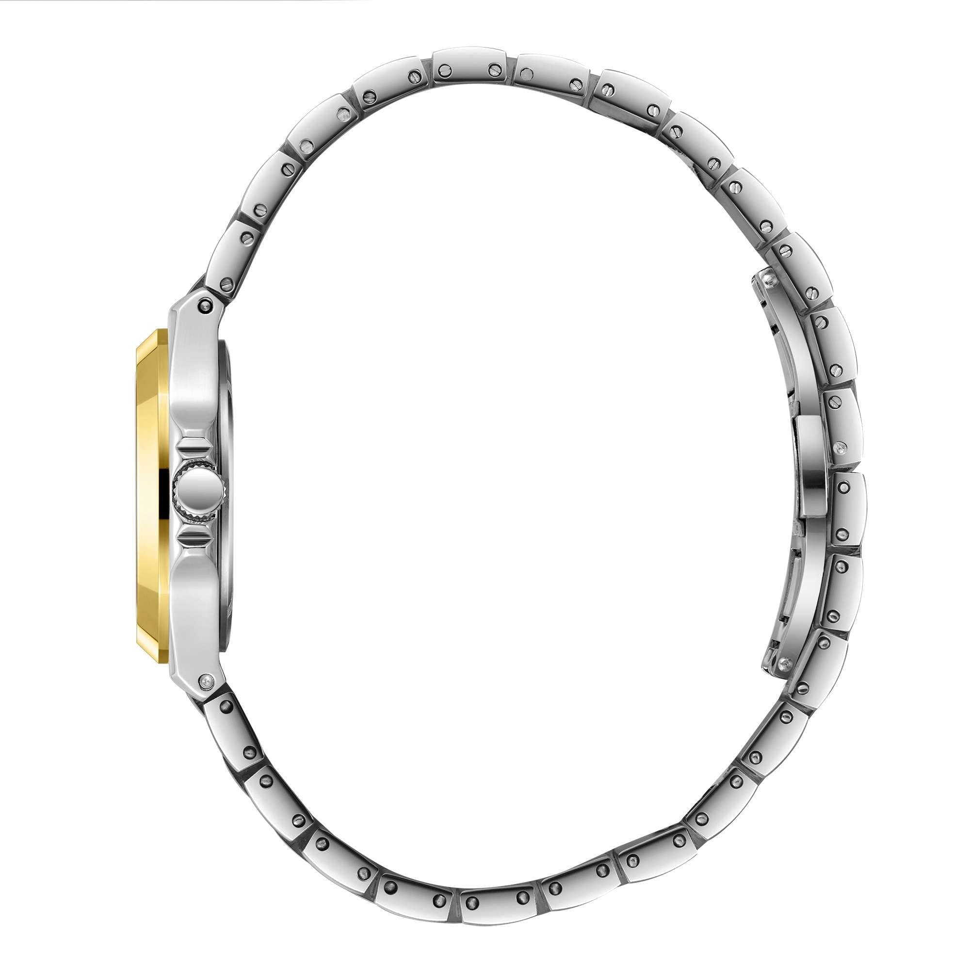 Американские женские часы Beverly Hills Polo Club BP3780X.230 - это стильный женский аксессуар, который сочетает элегантный дизайн и практичность. Корпус выполнен из нержавеющей стали серебристого цвета, диаметром 33,5 мм, что обеспечивает долговечность и утончённый внешний вид. Надежное минеральное стеклоМинеральное стеклоМинеральное стекло представляет собой искусственно выращенный минерал кварца. Такое стекло отличается особой устойчивостью к повреждениям и царапинам. Уступает по некоторым качествам сапфировому стеклу. с сапфировым покрытием защищает циферблат от царапин и обеспечивает долговечность. Метки в виде штрихов, в позиции "6 часов" инкрустирован синтетический бриллиант. Неподвижный безельБезельВнешний ободок, закрепляющий стекло. В спортивных часах так называется поворотное кольцо с делениями на циферблате, выполняет роль таймера – замеряет отрезки времени на шкале. Неподвижный безель – элемент декора. Однонаправленно вращающийся безель на дайверских часах позволяет фиксировать моменты погружения и выныривания на поверхность. с IP-покрытиемIP-покрытиеМетод ионного напыления. Демонстрирует повышенную устойчивость к истиранию, окислению и химическим веществам. Под воздействием высокого давления и температуры около 1500°C молекулы металла надёжно соединяются с частицами корпуса часов. золотистого цвета. Модель оснащена кварцевым механизмом, обеспечивающим высокую точность хода. Стальной браслет на застёжке-бабочке с кнопкамиЗастёжка "бабочка"Такой вид застёжки дополняется предохранителями, помогающими избежать случайного раскрытия браслета. Обладают изящным исполнением. обеспечивает комфортное ношение. Стрелки и метки оснащены люминесцентным покрытиемЛюминесцентное покрытиеПозволяет считывать показания времени в темноте. Производители наносят на стрелки, часовые индексы, безель или поверхность циферблата светонакопительный состав, дающий холодное свечение., обеспечивающим отличную видимость даже при слабом освещении. Окошко даты находится в положении 3 часа. Водозащита 30 метров позволит защитить корпус от случайных брызг или капель дождя. Эта модель – отличный выбор для тех, кто ищет сочетание стиля, качества и функциональности. Часы станут не только полезным аксессуаром, но и выразительным элементом вашего имиджа.