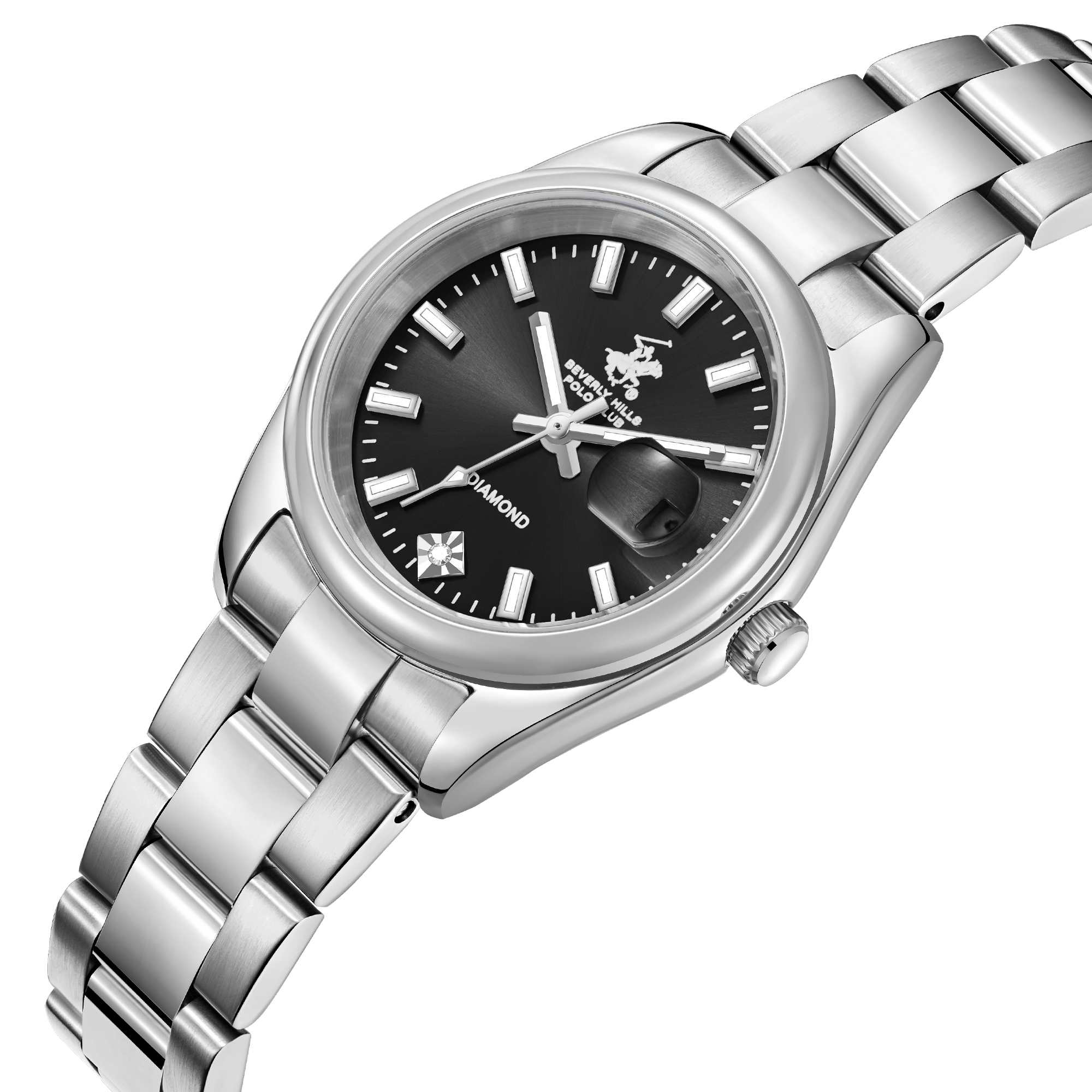 Американские женские часы Beverly Hills Polo Club BP3794X.350 - это стильный женский аксессуар, который сочетает элегантный дизайн и практичность. Корпус выполнен из нержавеющей стали серебристого цвета, диаметром 34,5 мм, что обеспечивает долговечность и утончённый внешний вид. Надежное минеральное стеклоМинеральное стеклоМинеральное стекло представляет собой искусственно выращенный минерал кварца. Такое стекло отличается особой устойчивостью к повреждениям и царапинам. Уступает по некоторым качествам сапфировому стеклу. с сапфировым покрытием защищает циферблат от царапин и обеспечивает долговечность. Метки в виде штрихов, в позиции "6 часов" инкрустирован синтетический бриллиант. Модель оснащена кварцевым механизмом, обеспечивающим высокую точность хода. Стальной браслет на застёжке-бабочке с кнопкамиЗастёжка "бабочка"Такой вид застёжки дополняется предохранителями, помогающими избежать случайного раскрытия браслета. Обладают изящным исполнением. обеспечивает комфортное ношение. Стрелки и метки оснащены люминесцентным покрытиемЛюминесцентное покрытиеПозволяет считывать показания времени в темноте. Производители наносят на стрелки, часовые индексы, безель или поверхность циферблата светонакопительный состав, дающий холодное свечение., обеспечивающим отличную видимость даже при слабом освещении. Окошко даты находится в положении 3 часа. Водозащита 30 метров позволит защитить корпус от случайных брызг или капель дождя. Эта модель – отличный выбор для тех, кто ищет сочетание стиля, качества и функциональности. Часы станут не только полезным аксессуаром, но и выразительным элементом вашего имиджа.