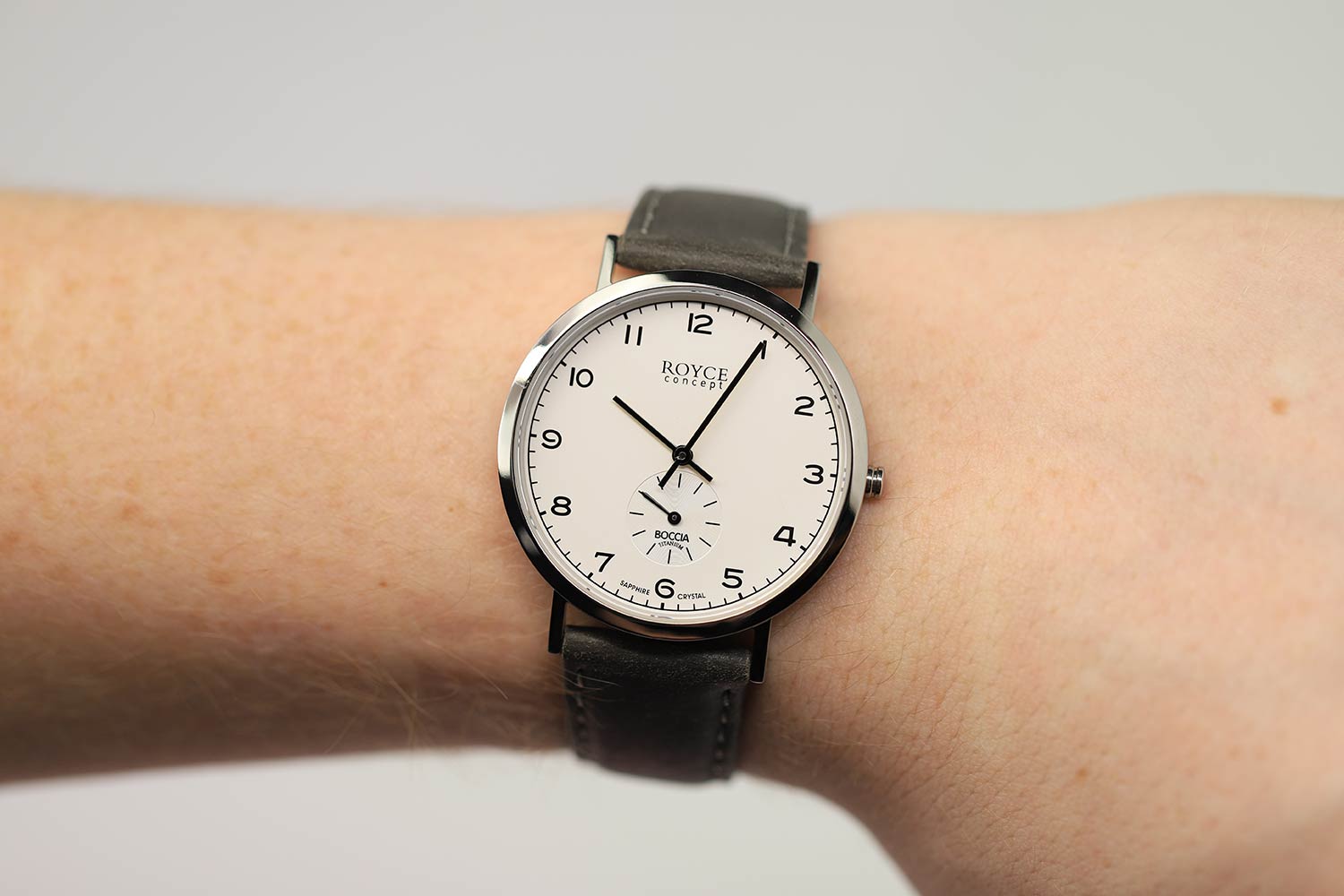 Мужские наручные часы Boccia Titanium 3642-01 с надёжным кварцевым механизмом. Сапфировое стеклоСапфировое стеклоПрочный и надёжный материал из кристалла сапфира синтетического происхождения, характеризующийся особой твёрдостью и устойчивостью к царапинам и повреждениям. устойчивое к мелким механическим повреждениям. Корпус часов изготовлен из титана. Кожаный ремешок на стандартной застёжке. Секундная стрелка на отдельном циферблате. Класс водозащиты: 30 метров, позволит защитить корпус от случайных брызг или капель дождя.