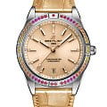 Эти элегантные часы в стиле современное ретро созданы для представительниц прекрасного пола, желающих выделиться из толпы. Chronomat South Sea легко узнать по специальным лакированным циферблатам с золотыми индексами и стрелками, инкрустированным бриллиантами часовым маркерам и украшенным драгоценными камнями безелем коктейльных оттенков. К ним по цвету были подобраны блестящие ремешки из кожи аллигатора с раскладными застежками.