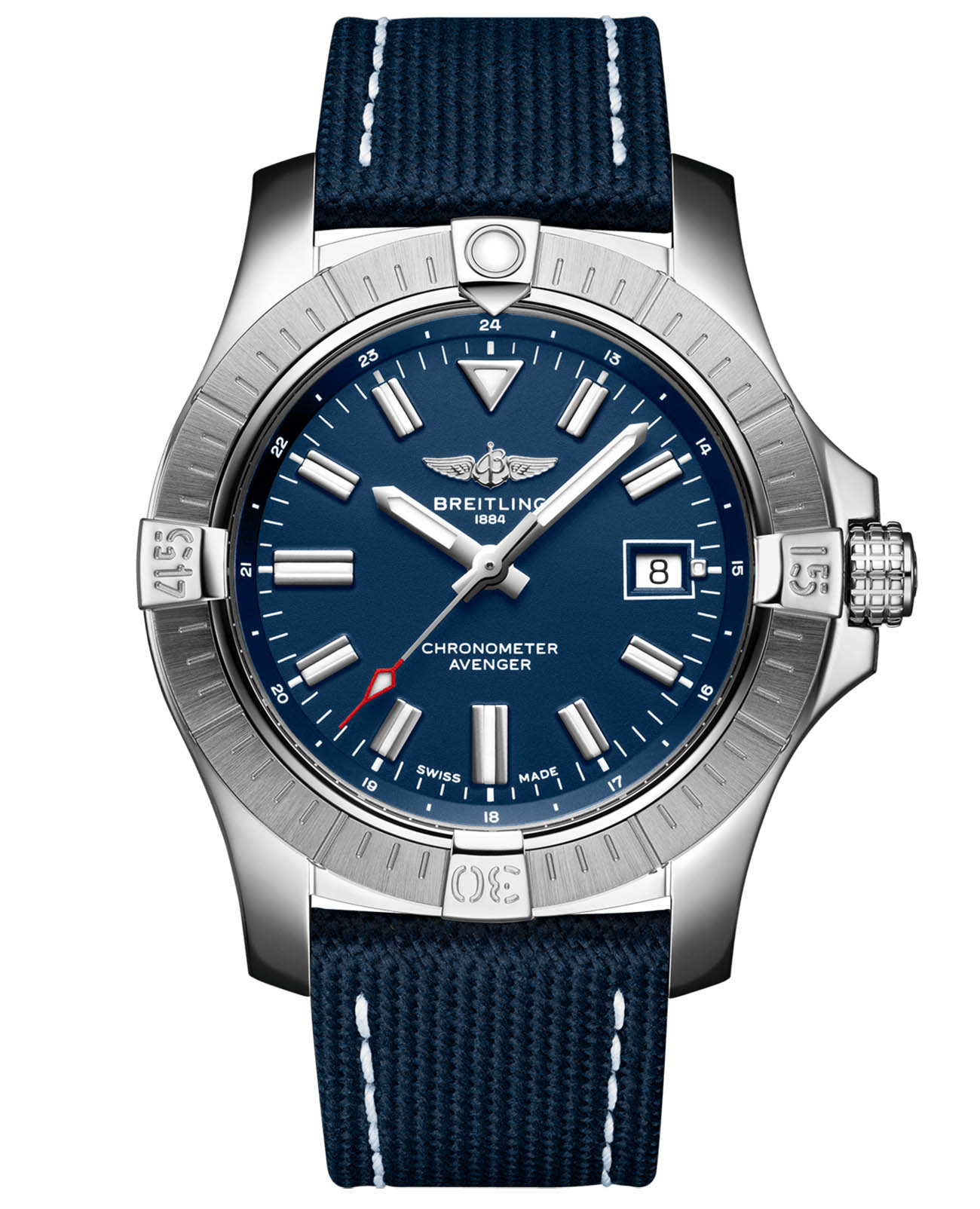 Мужские швейцарские часы Breitling Avenger Automatic 43 A17318101C1X2, механический механизм (автоматический калибр) Breitling 17 с высокой точностью. Выпуклое сапфировое стекло устойчивое к появлению царапин, обладающее высокой прозрачностью и антибликовым покрытием с обеих сторон.