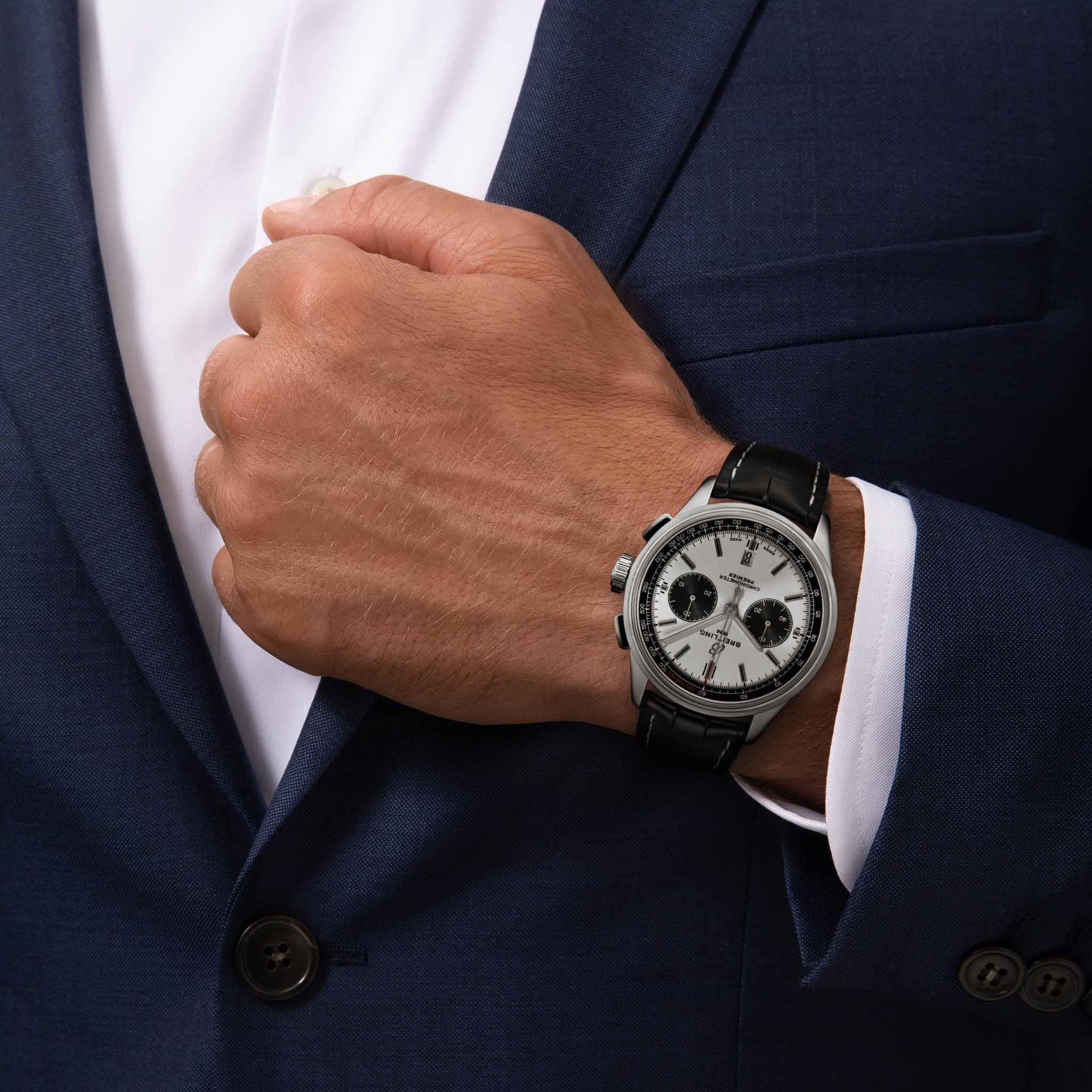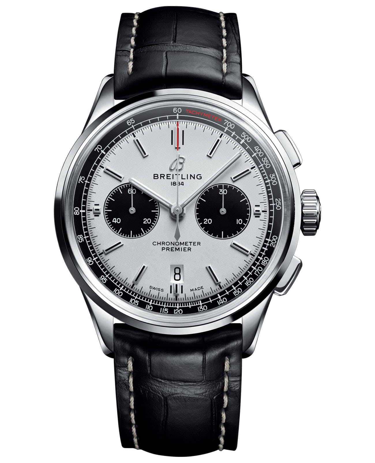 Часы Premier, разработанные Вилли Брайтлингом в 40-х годах прошлого века, стали первой моделью бренда, которая задумывалась в первую очередь как стильный аксессуар. Современная версия Premier, как и ее историческая предшественница, отличается элегантностью и изысканными деталями в стиле ретро, которые подчеркивают безупречный стиль своего владельца. Квадратные кнопки хронографа, циферблат «панда», характерный для хронографов с компоновкой bi-compax, бороздки по бокам корпуса и прозрачная задняя крышка из сапфирового стекла – все эти детали создают оригинальный внешний вид модели.