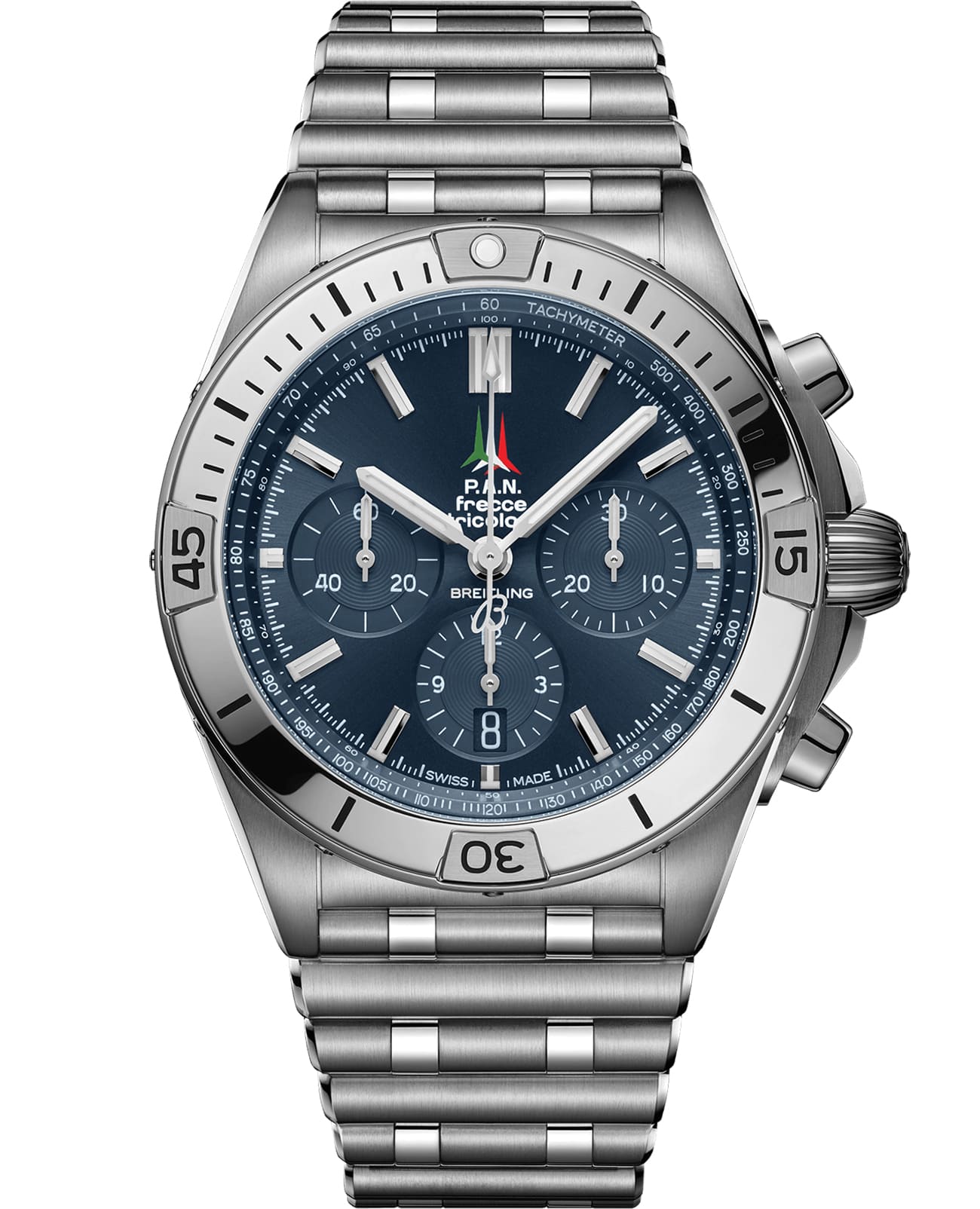 Лимитированная серия Chronomat Frecce Tricolori посвящена хронографу 1983 года, созданному в честь знаменитой пилотажной группы ВВС Италии. Тираж серии составляет всего 250 экземпляров.