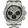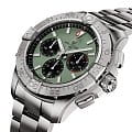 Breitling Avenger B01 Chronograph 44 с референсным номером AB0147101L1A1 — элегантные мужские часы, сочетающие стиль и функциональность. Корпус диаметром 44 мм выполнен из нержавеющей стали, что обеспечивает прочность и долговечность. Сапфировое стеклоСапфировое стеклоПрочный и надёжный материал из кристалла сапфира синтетического происхождения, характеризующийся особой твёрдостью и устойчивостью к царапинам и повреждениям. с антибликовым покрытием с обеих сторон защищает циферблат и обеспечивает отличную читаемость. Зелёный матовый циферблат с накладными часовыми метками и стрелками, покрытыми люминесцентным покрытиемЛюминесцентное покрытиеПозволяет считывать показания времени в темноте. Производители наносят на стрелки, часовые индексы, безель или поверхность циферблата светонакопительный состав, дающий холодное свечение., гарантирует превосходную видимость в любых условиях. Хронограф включает три счётчика: 60 секунд, 30 минут и 12 часов, а окошко даты расположено на отметке «3 часа». Часы оснащены автоматическим калибром Breitling 01, сертифицированным COSCСертификат COSCОфициальный сертификат, подтверждающий то, что часы ходят с особо высокой точностью. Для получения документа часы подвергаются тестовым испытаниям, разработанным швейцарским институтом тестирования хронометров COSC. Допустимая норма для механических часов -4/+6 секунд в день, для кварцевых моделей +/- 0,07 секунд в день.. Механизм имеет частоту 28 800 полуколебаний в час, 45 камней и запас хода около 70 часов. Водозащита до 30 ATM (300 метров) делает их подходящими для плавания и дайвинга. Браслет из нержавеющей стали с раскладной застёжкойРаскладная застёжкаТакой тип застёжки используется только на браслетах из металла. Она никогда не раскрывается полностью, происходит разделение на 2 и более частей. Раскладывающая застёжка снизит вероятность потери часов к минимуму. и предохранителем обеспечивает комфортное ношение и надёжную фиксацию. Breitling Avenger B01 Chronograph 44 AB0147101L1A1 — выбор для мужчин, которые ценят стиль, функциональность и высокое качество.