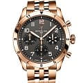 Корпус диаметром 42 мм выполнен из 18-каратного красного золота18-каратное золотоОбозначение по каратной системе пробирования, оно показывает, сколько драгоценного металла содержится в изделии. 18 карат - в составе 75% чистого золота, соответствует 750 пробе.