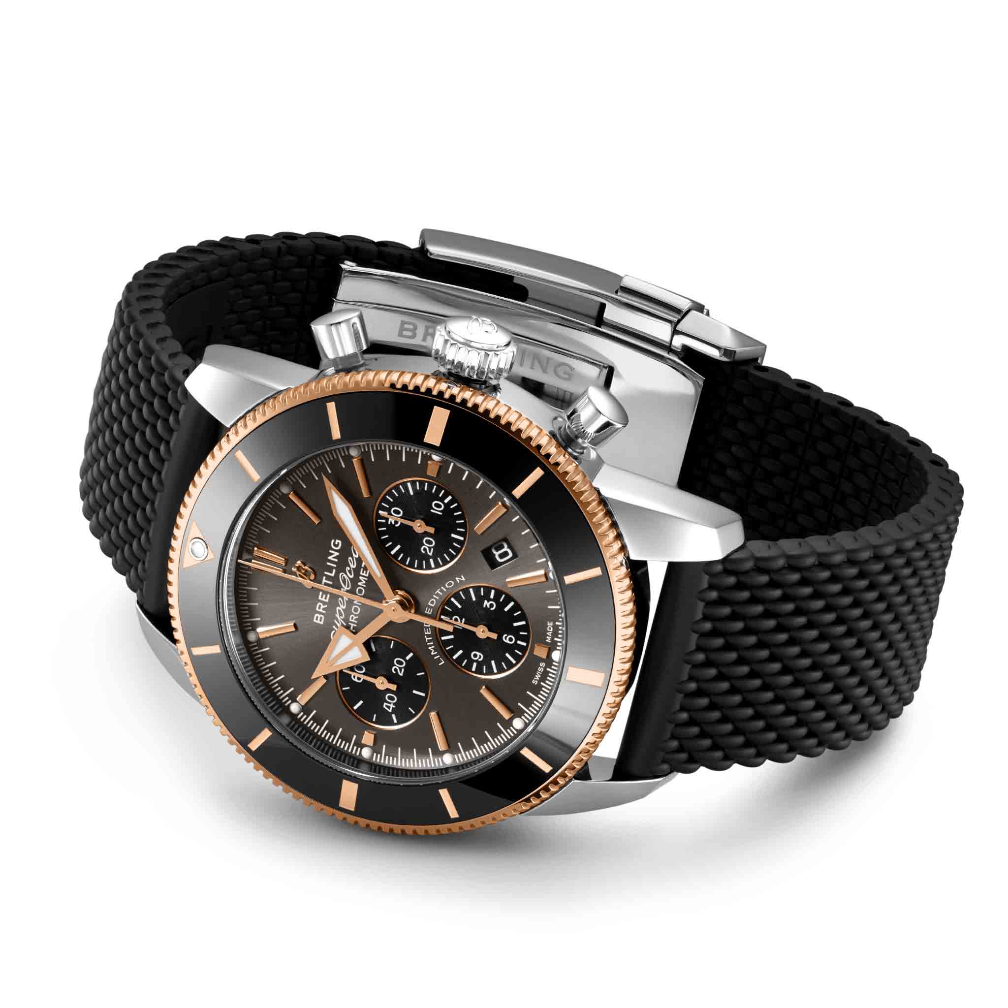 Вдохновленный оригинальным Superocean 1950-х годов, Superocean Heritage сочетает в себе культовые черты дизайна с современными нотками. Спортивный и элегантный Superocean Heritage является истинным воплощением морского стиля. Мужские швейцарские часы-хронографХронографФункция позволяет измерять отрезки времени с особой точностью: часы, минуты, секунды. Верным признаком хронографа является наличие на циферблате 3 дополнительных окошек-счётчиков. с секундомеромСекундомерСекундоме́р — прибор, способный измерять интервалы времени с точностью до долей секунды. Breitling Superocean Heritage B01 Chronograph 44 UB01621A1M1S1, механический механизм (автоматический калибр) с высокой точностью. Сапфировое стеклоСапфировое стеклоПрочный и надёжный материал из кристалла сапфира синтетического происхождения, характеризующийся особой твёрдостью и устойчивостью к царапинам и повреждениям. устойчивое к появлению царапин, обладающее высокой прозрачностью. Класс водозащиты: 200 метров, позволит плавать, нырять и заниматься другими водными видами спорта. Корпус часов изготовлен из стали с DLC-покрытиемDLC-покрытиеDiamond like carbon - одно из лучших видов покрытия, представляющее собой углерод с алмазными свойствами. На поверхность материала наносятся распавшиеся молекулы углерода, превращающиеся в плёнку из алмазоподобных связей, которая перенимает твёрдость алмаза.. Силиконовый ремешок с раскладной застёжкойРаскладная застёжкаТакой тип застёжки используется только на браслетах из металла. Она никогда не раскрывается полностью, происходит разделение на 2 и более частей. Раскладывающая застёжка снизит вероятность потери часов к минимуму.. Коллекция Superocean Heritage с серым циферблатом черного цвета выпущена ограниченным тиражом в 200 экземпляров. Часы Superocean Heritage, оснащенные культовыми стрелками треугольной формы, а также однонаправленным безелемБезельВнешний ободок, закрепляющий стекло. В спортивных часах так называется поворотное кольцо с делениями на циферблате, выполняет роль таймера – замеряет отрезки времени на шкале. Неподвижный безель – элемент декора. Однонаправленно вращающийся безель на дайверских часах позволяет фиксировать моменты погружения и выныривания на поверхность. с полированным керамическим кольцом, представляют собой элегантные часы для дайверов. Часы оснащены хронометром калибра 01, сертифицированным COSCСертификат COSCОфициальный сертификат, подтверждающий то, что часы ходят с особо высокой точностью. Для получения документа часы подвергаются тестовым испытаниям, разработанным швейцарским институтом тестирования хронометров COSC. Допустимая норма для механических часов -4/+6 секунд в день, для кварцевых моделей +/- 0,07 секунд в день., собственной мануфактуры Breitling.