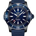 Крупная, объемная и неординарная модель Superocean Automatic 48 V17369161C1S1 специально разработана для самых требовательных дайверов. Благодаря специальному фиксатору керамического безеля и специальному корпусу из титана и мягкого железа эта модель позволит Вам безопасно изучать морские глубины. Superocean Automatic 48 выполнены в очень крупном титановом корпусе с высокопрочным углеродным покрытием (DLC) диаметром 48 мм, они оснащены синим керамическим безелем и темно-синим циферблатом.