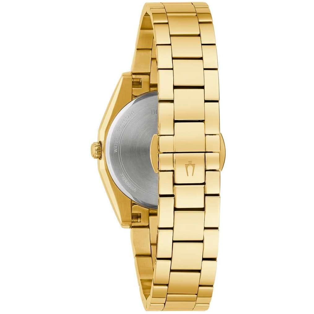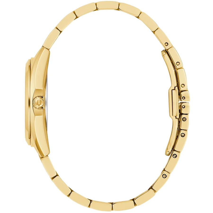 Женские кварцевые часы Bulova Surveyor 97P172 – отражающий идеальное сочетание современного дизайна, надёжности и функциональности. Элегантный облик станет превосходным завершением образа, наделив его индивидуальным характером. Корпус из нержавеющей стали с IP-покрытиемIP-покрытиеМетод ионного напыления. Демонстрирует повышенную устойчивость к истиранию, окислению и химическим веществам. Под воздействием высокого давления и температуры около 1500°C молекулы металла надёжно соединяются с частицами корпуса часов. золотистого цвета, диаметром 31 мм идеально сбалансирован и элегантен. Сапфировое стеклоСапфировое стеклоПрочный и надёжный материал из кристалла сапфира синтетического происхождения, характеризующийся особой твёрдостью и устойчивостью к царапинам и повреждениям. защищает циферблат от царапин и устойчивое к механическим повреждениям. Циферблат украшен бриллиантами. Стальной браслет с IP-покрытиемIP-покрытиеМетод ионного напыления. Демонстрирует повышенную устойчивость к истиранию, окислению и химическим веществам. Под воздействием высокого давления и температуры около 1500°C молекулы металла надёжно соединяются с частицами корпуса часов. на застёжке-бабочке с кнопкамиЗастёжка "бабочка"Такой вид застёжки дополняется предохранителями, помогающими избежать случайного раскрытия браслета. Обладают изящным исполнением. обеспечивает комфортное ношение. Стрелки с люминесцентным покрытиемЛюминесцентное покрытиеПозволяет считывать показания времени в темноте. Производители наносят на стрелки, часовые индексы, безель или поверхность циферблата светонакопительный состав, дающий холодное свечение.. Водозащита 30 метров позволит защитить корпус от случайных брызг или капель дождя. Эта модель – отличный выбор для тех, кто ищет сочетание стиля, качества и функциональности. Часы станут не только полезным аксессуаром, но и выразительным элементом вашего имиджа.