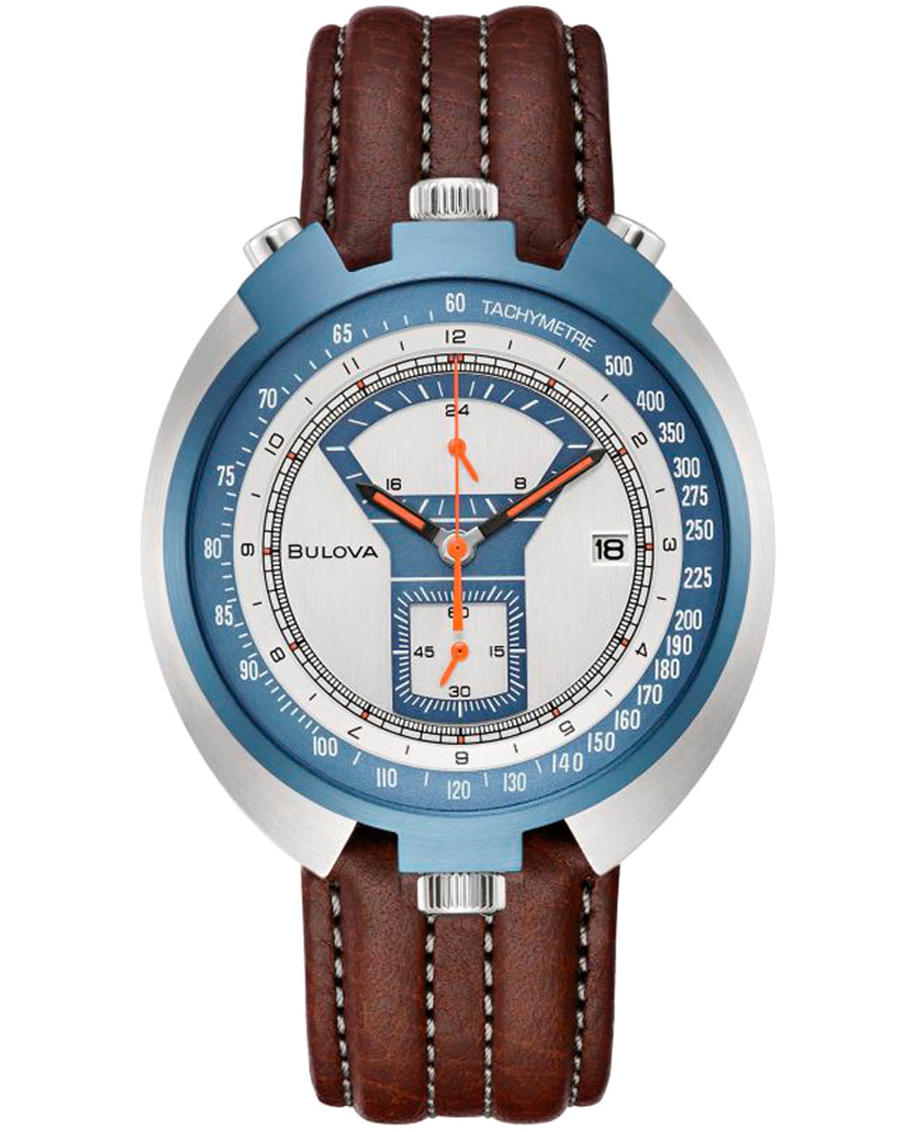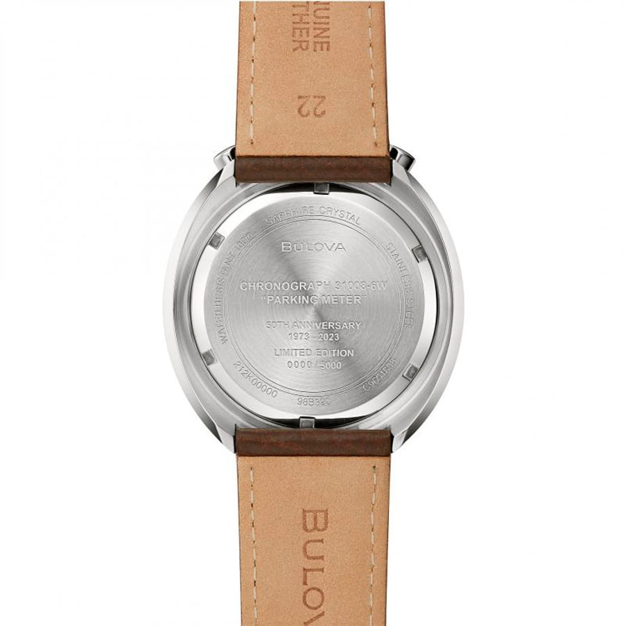 Мужские кварцевые часы-хронографХронографФункция позволяет измерять отрезки времени с особой точностью: часы, минуты, секунды. Верным признаком хронографа является наличие на циферблате 3 дополнительных окошек-счётчиков. Bulova Parking Meter 98B390 – отражающий идеальное сочетание современного дизайна, надёжности и функциональности. Лимитированная серия - 5000 экземпляров. Корпус из нержавеющей стали серебристого цвета, диаметром 43 мм идеально сбалансирован и надежен. Сапфировое стеклоСапфировое стеклоПрочный и надёжный материал из кристалла сапфира синтетического происхождения, характеризующийся особой твёрдостью и устойчивостью к царапинам и повреждениям. защищает циферблат от царапин и устойчивое к механическим повреждениям. Окошко даты находится в положении 3 часа. Кожаный ремешок на стандартной застёжке обеспечивает комфортное ношение. БезельБезельВнешний ободок, закрепляющий стекло. В спортивных часах так называется поворотное кольцо с делениями на циферблате, выполняет роль таймера – замеряет отрезки времени на шкале. Неподвижный безель – элемент декора. Однонаправленно вращающийся безель на дайверских часах позволяет фиксировать моменты погружения и выныривания на поверхность. с PVD-покрытиемPVDУльтратонкое покрытие наносится в технике вакуумного напыления, сочетает в себе нитрид титана особой прочности со слоем золота или оксида хрома. Несёт в себе декоративную или защитную функцию.. Водозащита 100 метров позволит плавать, нырять и заниматься другими водными видами спорта. ТахиметрТахиметрРазмеченная шкала, располагается на ободке или безеле часов. Тахиметр позволяет рассчитать скорость на определённом участке пути, расстояние измеряется в километрах или милях. по внешнему краю. Стрелки с люминесцентным покрытиемЛюминесцентное покрытиеПозволяет считывать показания времени в темноте. Производители наносят на стрелки, часовые индексы, безель или поверхность циферблата светонакопительный состав, дающий холодное свечение. позволяющие легко определять время даже в темноте. Эта модель – отличный выбор для тех, кто ищет сочетание стиля, качества и функциональности. Часы станут не только полезным аксессуаром, но и выразительным элементом вашего имиджа.