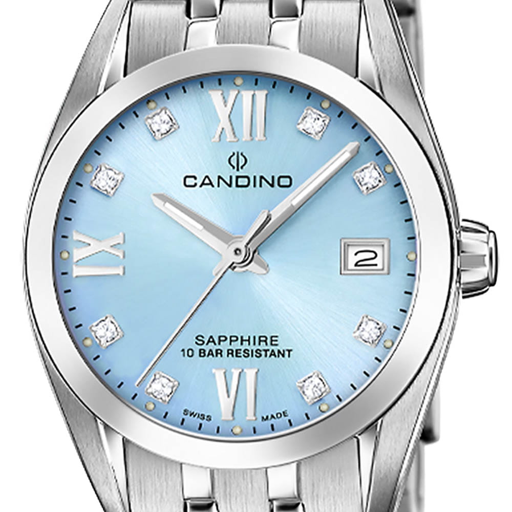Женские швейцарские часы Candino Couple Quartz C4703/F — это воплощение швейцарского мастерства и элегантности. Оснащённые высокоточным кварцевым механизмом, они обеспечивают безупречное измерение времени. Сапфировое стеклоСапфировое стеклоПрочный и надёжный материал из кристалла сапфира синтетического происхождения, характеризующийся особой твёрдостью и устойчивостью к царапинам и повреждениям. защищает циферблат от мелких царапин и повреждений, сохраняя его кристальную чистоту.