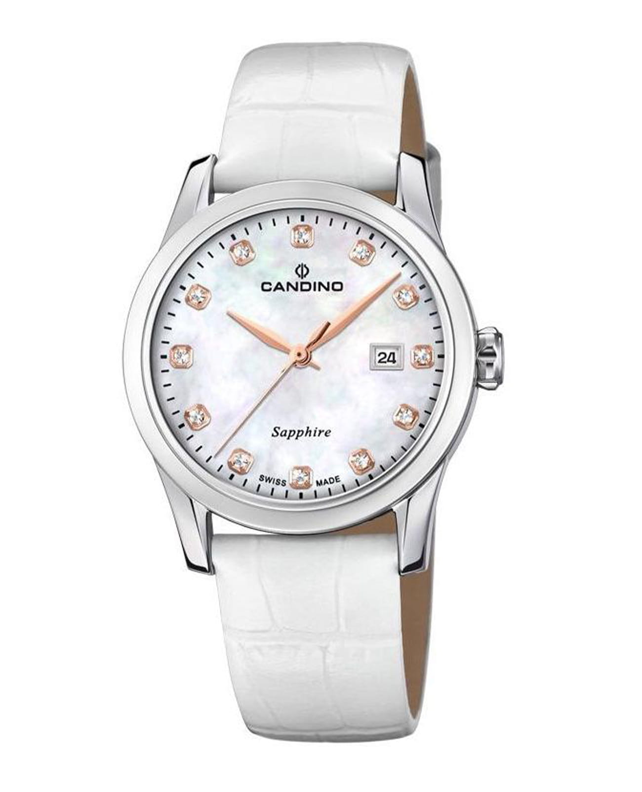Женские швейцарские часы с сапфировым стеклом Candino Elegance C4736/1, кварцевый механизм с высокой точностью. Сапфировое стекло устойчивое к появлению царапин, обладающее высокой прозрачностью. Класс водозащиты: 50 метров, позволит защитить корпус от случайных брызг или капель дождя. Корпус часов изготовлен из стали, цвета.