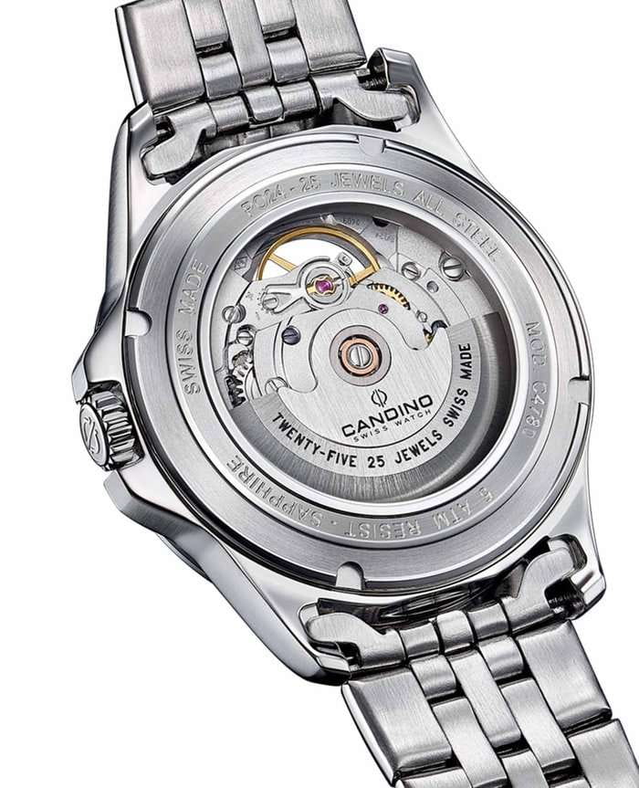 Мужские часы Candino C4780/6 из коллекции Automatic — воплощение изысканности и надежности. Эти часы оснащены автоматическим механизмом, который обеспечивает точное измерение времени без необходимости частой подзаводки. Элегантный черный циферблат с открытым механизмом, метками в виде штрихов и римскими цифрами VI и XII придают модели уникальный и современный вид, позволяя заглянуть в сердце механизма. Корпус диаметром 42 мм изготовлен из прочной нержавеющей стали, что гарантирует долговечность и устойчивость к внешним повреждениям. Сапфировое стеклоСапфировое стеклоПрочный и надёжный материал из кристалла сапфира синтетического происхождения, характеризующийся особой твёрдостью и устойчивостью к царапинам и повреждениям. обеспечивает высокую степень защиты от царапин и сохраняет первозданный вид часов на протяжении долгого времени. Стрелки и метки с люминесцентным покрытиемЛюминесцентное покрытиеПозволяет считывать показания времени в темноте. Производители наносят на стрелки, часовые индексы, безель или поверхность циферблата светонакопительный состав, дающий холодное свечение., что облегчает чтение времени даже в условиях слабого освещения. Стальной браслет на раскладной застёжкеРаскладная застёжкаТакой тип застёжки используется только на браслетах из металла. Она никогда не раскрывается полностью, происходит разделение на 2 и более частей. Раскладывающая застёжка снизит вероятность потери часов к минимуму. не только дополняет общую эстетику, но и обеспечивает комфортное ношение на протяжении всего дня. С водонепроницаемостью до 50 метров эти часы подходят для повседневного использования, выдерживая случайные контакты с водой, такие как дождь или мытьё рук. Эти часы станут идеальным аксессуаром для уверенного в себе мужчины, который ценит стиль и функциональность в каждом элементе своего образа.
