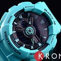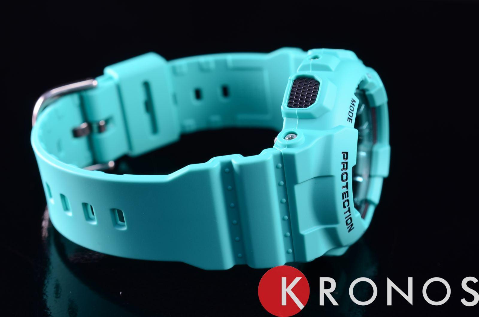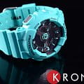 Лазурный оттенок гармонирует с контрастным чёрным циферблатом, прослеживается дизайн в уличном стиле. Привлекательно смотрятся оригинальные стрелки. Противоударный корпусУдаропрочный корпусМеханизм заключён в корпус, выполненный из современных материалов, устойчивых к ударам, механическим повреждениям и падению с высоты: инновационный пластик, карбон, нержавеющая сталь, титан. защищает японский кварцевый калибр от последствий падения, ударов, вибрации. Механизм работает от батарейки, рассчитанной на 2-летний срок. Закаленное минеральное стекло. Светодиодная подсветкаСветодиодная подсветкаСветодиодная или LED-подсветка обеспечивает появление яркого холодного свечения за счёт LED-элементов - маленьких лампочек. Они потребляют минимальное количество энергии, чаще всего можно встретить 1 светодиод, в нижней части циферблата. циферблата. Водостойкость 100 метров. Полимерный ремешок в качестве амортизатора. Будильник, мировое времяМировое время Полезное часовое усложнение, отображающее время в основных городах и известных областях по всему миру, оно связано с часовыми поясами, удобно для путешественников и бизнесменов. , таймер, хронографХронографФункция позволяет измерять отрезки времени с особой точностью: часы, минуты, секунды. Верным признаком хронографа является наличие на циферблате 3 дополнительных окошек-счётчиков., секундомер, вечный календарьВечный календарьКлассическое часовое усложнение, представляющее собой календарь, рассчитанный на несколько лет вперёд (стандартно – до 2099 года). Определяет текущую дату, день недели, месяц.. Габариты: 46,3 x 43,4 x 15,8 мм.