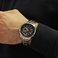 Светодиодная подсветка с автоподсветкой обеспечивает освещение всего циферблата, функция автоподсветки обеспечивает автоматическое включение подсветки. Питание от солнечной энергии, индикатор заряда батареи. Секундомер с точностью показаний 1/100с и временем измерения 24ч. Сплит-хронограф. Таймер обратного отсчета от 1мин до 60мин с автоповтором. Коррекция текущего времени радиосигналом на территории почти всей Европы, Китая, США и Японии. 12-ти и 24-х часовой формат времени. Мировое время. Водонепроницаемость 100м. Минеральное стекло устойчиво к царапинам. Корпус и браслет из нержавеющей стали.