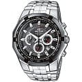 Стильный мужские наручные часы Casio Edifice надежные и практичные. Кварцевый японский механизм Miyota. Точность хода не хуже -10 +15 сек./в месяц. Часы оснащены функцией хронографа и тахиметра. Циферблат черного цвета с контрастными индексами. Безель с IP покрытием черного цвета. Стрелки и индексы с светонакопительным нанесением. Корпус и браслет выполнены из высококачественной стали с антикоррозийными свойствами. Минеральное стекло устойчиво к появлению царапин. Водонепроницаемость 100М. В часах можно плавать.
