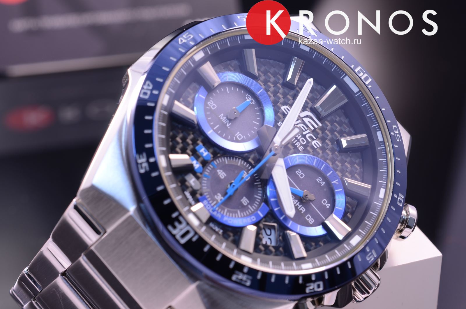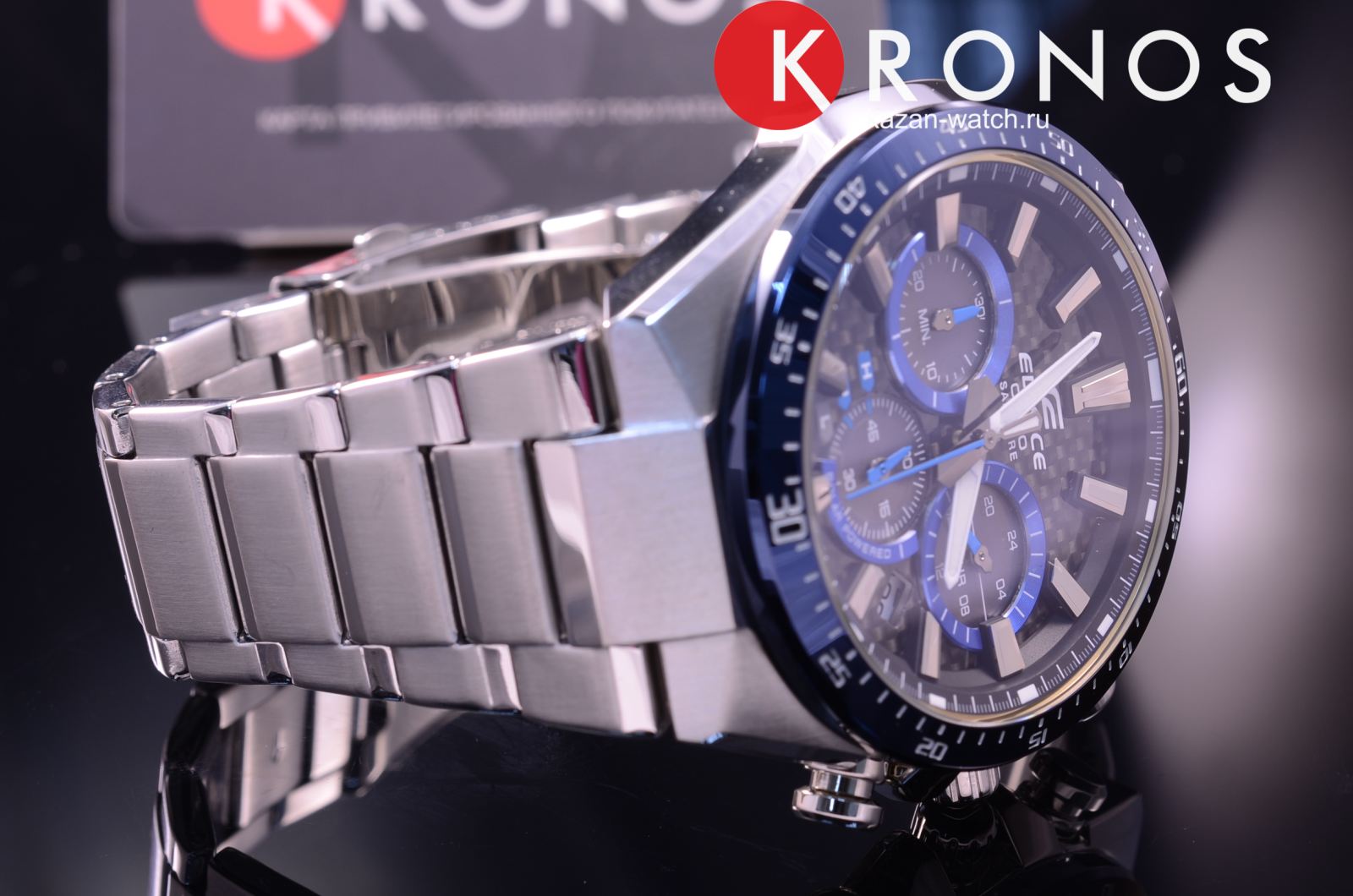 Дерзкий автомобильный дизайн, обтекаемые формы, строгие линии никого не оставят равнодушным. Эксклюзивной деталью стал циферблат с шахматным узором, поверхность которого выполнена из карбона. Модель способна получать энергию от солнечного света, она основана на технологии . Следить за состоянием заряда аккумулятора можно благодаря наличию специального индикатора. Противоударный корпусУдаропрочный корпусМеханизм заключён в корпус, выполненный из современных материалов, устойчивых к ударам, механическим повреждениям и падению с высоты: инновационный пластик, карбон, нержавеющая сталь, титан. и браслет сделаны из стали 316L, долговечный материал устойчив к коррозии. Точность хода кварцевого японского механизма составляет +/- 20 секунд в месяц. БезельБезельВнешний ободок, закрепляющий стекло. В спортивных часах так называется поворотное кольцо с делениями на циферблате, выполняет роль таймера – замеряет отрезки времени на шкале. Неподвижный безель – элемент декора. Однонаправленно вращающийся безель на дайверских часах позволяет фиксировать моменты погружения и выныривания на поверхность. с синим IP-покрытиемIP-покрытиеМетод ионного напыления. Демонстрирует повышенную устойчивость к истиранию, окислению и химическим веществам. Под воздействием высокого давления и температуры около 1500°C молекулы металла надёжно соединяются с частицами корпуса часов.. Сапфировое стекло. Закручивающаяся задняя крышка. Подсветка NeobriteПодсветка NeobriteИспользование светонакопительных составов на основе сульфида цинка или алюмината стронция, яркий свет можно наблюдать на протяжении 6-10 часов после «зарядки» часов около источника света.. Водонепроницаемость 10 бар. Секундомер, календарь. Габариты: 50 x 47,5 x 12,7 мм.