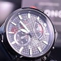 Стильные японские наручные кварцевые мужские часы. Круглый корпус часов выполнен из стали с антикоррозийными свойствами с IP покрытием. Черный карбоновый циферблат с контрастными элементами дизайна. Водонепроницаемость 10 ATM. Минеральное стекло, устойчивое к появлению царапин. Ремешок из натуральной кожи черного цвета. Часы оснащены функцией хронографа.
