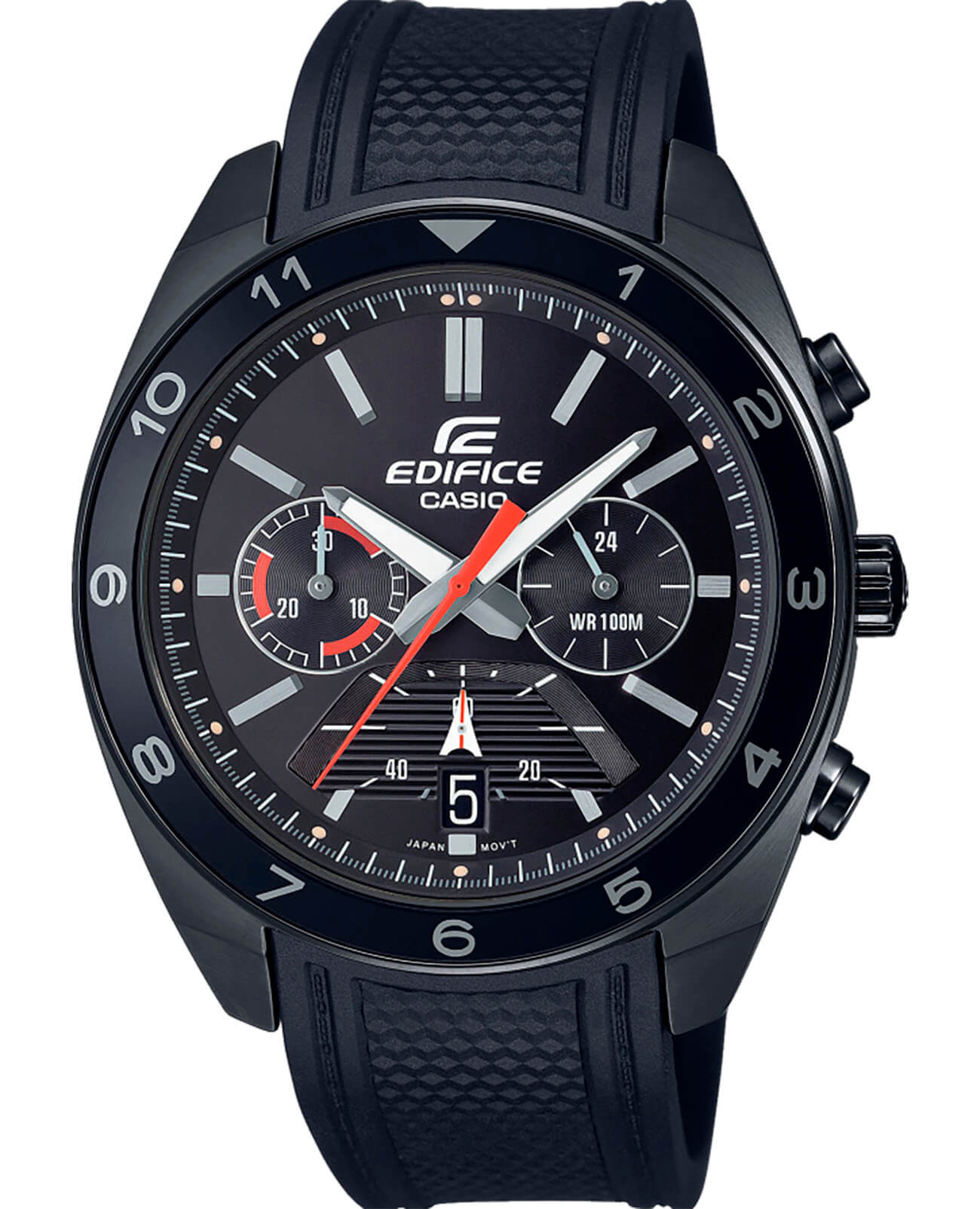 Модель из коллекции Edifice представляет собой стильный спортивный хронографХронографФункция позволяет измерять отрезки времени с особой точностью: часы, минуты, секунды. Верным признаком хронографа является наличие на циферблате 3 дополнительных окошек-счётчиков., который станет идеальным дополнением к деловому, спортивному, повседневному стилю.