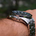 Тёмный циферблат напоминает о приборной панели автомобиля, расставлены золотистые цветовые акценты. Необычное исполнение переплетается с использованием современных материалов, благодаря чему часы сохраняют отменную точность хода и безупречный внешний вид на долгие годы. Не подведёт и батарейка, питающая энергией кварцевый механизм, она рассчитана на 10 лет службы. Закаленное минеральное стекло. Водонепроницаемость 100 метров. Люминесцентная подсветкаЛюминесцентное покрытиеПозволяет считывать показания времени в темноте. Производители наносят на стрелки, часовые индексы, безель или поверхность циферблата светонакопительный состав, дающий холодное свечение.. Нержавеющая сталь 316L. Алюминиевый безельБезельВнешний ободок, закрепляющий стекло. В спортивных часах так называется поворотное кольцо с делениями на циферблате, выполняет роль таймера – замеряет отрезки времени на шкале. Неподвижный безель – элемент декора. Однонаправленно вращающийся безель на дайверских часах позволяет фиксировать моменты погружения и выныривания на поверхность.. Секундомер, календарь, будильник, записная книжка на 30 записей. Габариты: 51,6 x 46,6 x 14,2 мм.