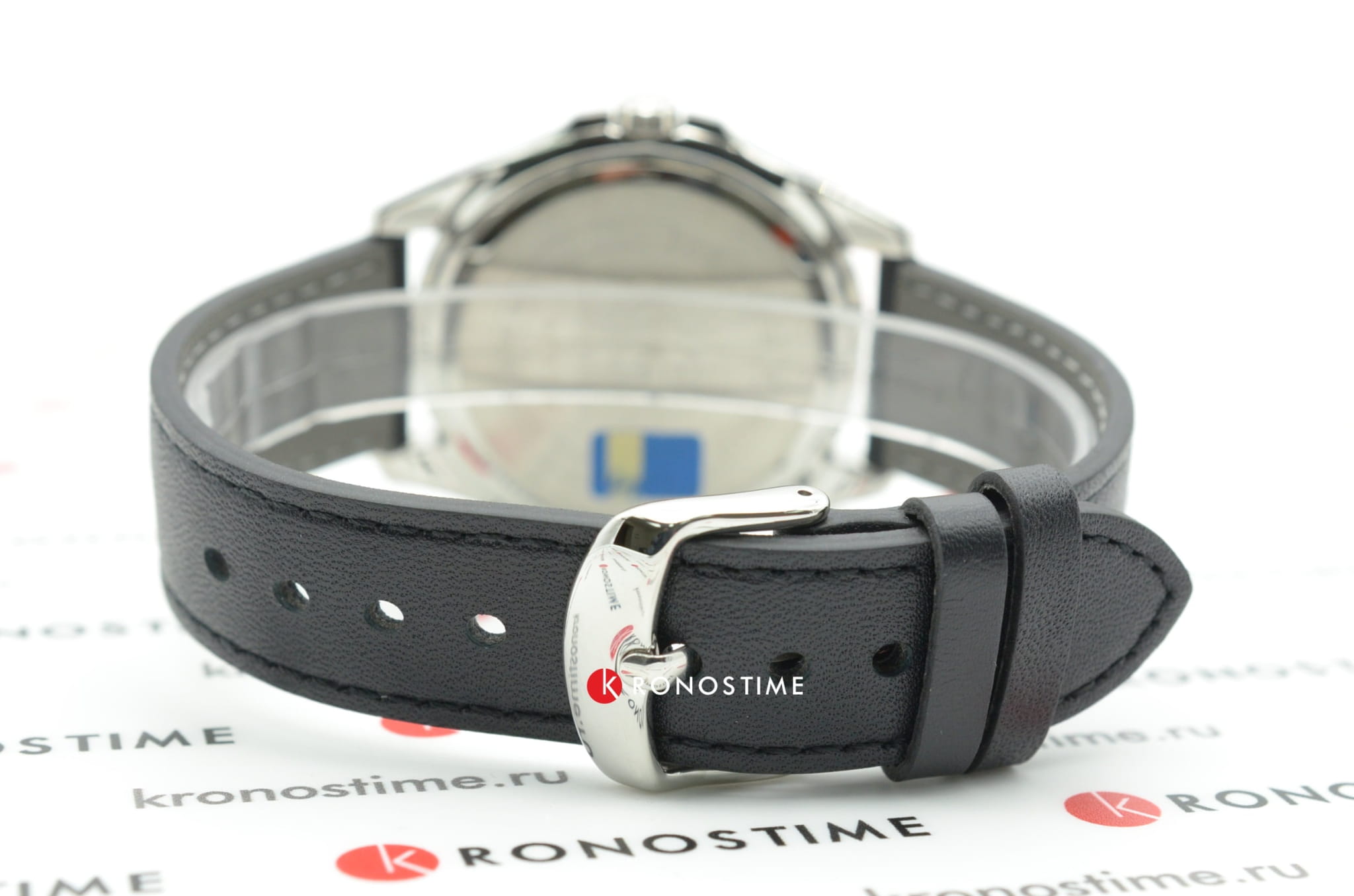 Аксессуар в спортивном стиле станет превосходным дополнением к повседневному образу, тёмный фактурный циферблат акцентирует внимание на элементах голубого цвета. Кварцевый японский механизм обеспечивает высокую точность хода +/- 20 секунд в месяц, батарейка рассчитана на 3 года службы. Ударопрочный корпусУдаропрочный корпусМеханизм заключён в корпус, выполненный из современных материалов, устойчивых к ударам, механическим повреждениям и падению с высоты: инновационный пластик, карбон, нержавеющая сталь, титан. из хирургической стали 316L. Сапфировое стекло препятствует возникновению царапин. Ремешок из натуральной кожи. Подсветка NeobriteПодсветка NeobriteИспользование светонакопительных составов на основе сульфида цинка или алюмината стронция, яркий свет можно наблюдать на протяжении 6-10 часов после «зарядки» часов около источника света.. Водостойкость 100 метров. Отображение текущего числа. Габариты: 42,5 x 47,5 x 8,3 мм.