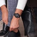 Наручные часы выполнены в спортивном стиле, тёмный циферблат, дополненный контрастными элементами, идеально гармонирует с любой одеждой. Брендовый кварцевый хронографХронографФункция позволяет измерять отрезки времени с особой точностью: часы, минуты, секунды. Верным признаком хронографа является наличие на циферблате 3 дополнительных окошек-счётчиков. получает питание от аккумулятора, срок службы которого составит 5 лет. Сапфировое стекло характеризуется повышенной устойчивостью к царапинам. Люминесцентная подсветка NeobriteЛюминесцентное покрытиеПозволяет считывать показания времени в темноте. Производители наносят на стрелки, часовые индексы, безель или поверхность циферблата светонакопительный состав, дающий холодное свечение.. Водонепроницаемость 100 метров. Чёрное IP-покрытиеIP-покрытиеМетод ионного напыления. Демонстрирует повышенную устойчивость к истиранию, окислению и химическим веществам. Под воздействием высокого давления и температуры около 1500°C молекулы металла надёжно соединяются с частицами корпуса часов.. Функция секундомера, отображение даты. Габариты: 50,5 x 45,6 x 9,5 мм.