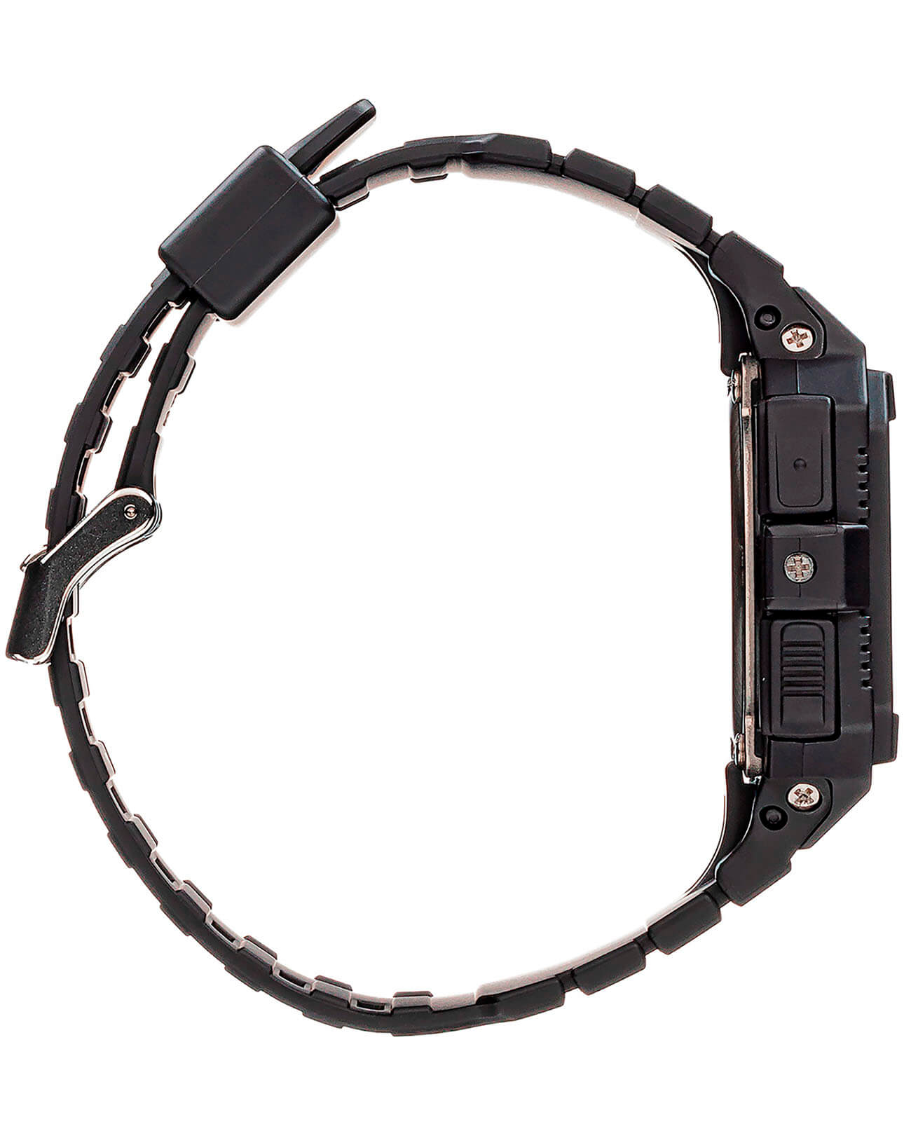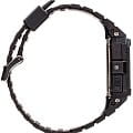 Олдскульные часы в монохромной чёрной гамме, напоминающие модели 1985-ого года, имеют матовую поверхность. Такое исполнение позволяет сочетать аксессуар с любой одеждой, он будет органично смотреться в любой ситуации. Модель с инверсионным дисплеем обладает противоударным корпусомУдаропрочный корпусМеханизм заключён в корпус, выполненный из современных материалов, устойчивых к ударам, механическим повреждениям и падению с высоты: инновационный пластик, карбон, нержавеющая сталь, титан. из полимерного пластика, материал отличается устойчивостью к повреждениям и падениям. Японский кварцевый калибр с точностью хода -/+15 секунд в месяц. Срок службы батарейки составляет 10 лет. Водонепроницаемость 20 бар. Электролюминесцентная подсветкаЭлектролюминесцентная подсветкаЭлектролюминесцентная панель устанавливается под ЖК-экраном часов, при нажатии кнопки электричество преобразуется в свет за счёт подачи напряжения на атомы фосфора, такой тип подсветки позволяет освещать весь циферблат.. Минеральное стекло. 12/24-часовое отображение времени. Секундомер, мировое времяМировое время Полезное часовое усложнение, отображающее время в основных городах и известных областях по всему миру, оно связано с часовыми поясами, удобно для путешественников и бизнесменов. , будильник, хронографХронографФункция позволяет измерять отрезки времени с особой точностью: часы, минуты, секунды. Верным признаком хронографа является наличие на циферблате 3 дополнительных окошек-счётчиков., календарь до 2099 года, таймер. Габариты: 45,4 x 46,2 x 13,6 мм.