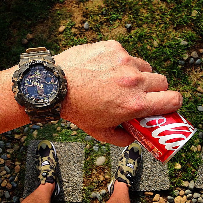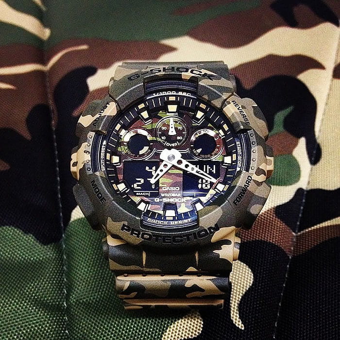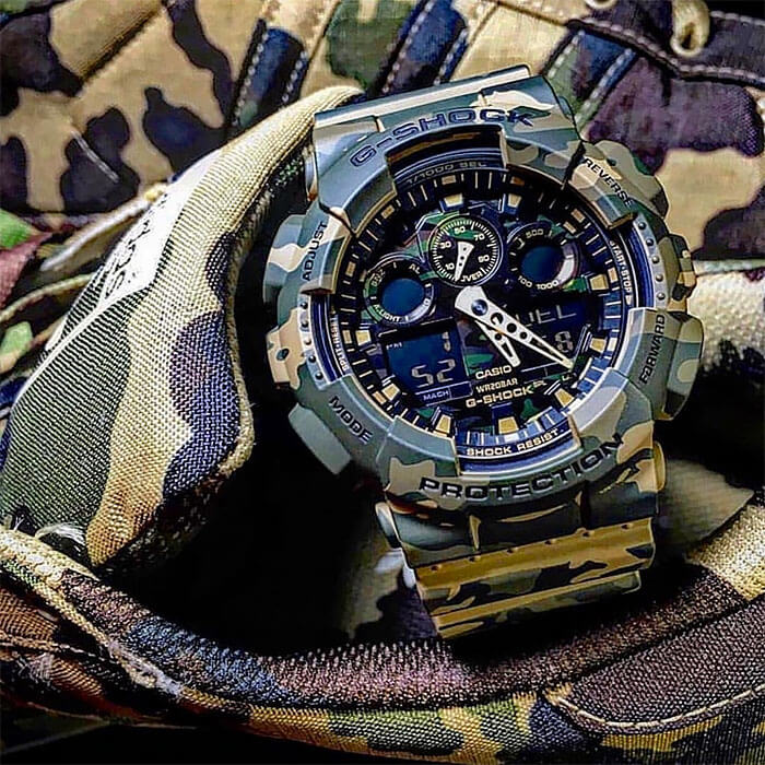 Часы в камуфляжном подойдут к любой одежде, оригинально смотрятся контрастные перфорированные стрелки. Аксессуар "Three-eye" с 3 характерными счётчиками в верхней части отличаются противоударным корпусомУдаропрочный корпусМеханизм заключён в корпус, выполненный из современных материалов, устойчивых к ударам, механическим повреждениям и падению с высоты: инновационный пластик, карбон, нержавеющая сталь, титан., выдерживающим максимальные нагрузки. Японский кварцевый калибр с точностью хода +/- 15 секунд в месяц. Срок службы батарейки составляет 3 года. Минеральное стекло устойчиво к царапинам. Минимизация влияния магнитного поля. Водонепроницаемость 200 метров. Функции: будильник с возможностью повтора, расчёт средней скорости по пройденному маршруту, таймер обратного отсчёта, хронографХронографФункция позволяет измерять отрезки времени с особой точностью: часы, минуты, секунды. Верным признаком хронографа является наличие на циферблате 3 дополнительных окошек-счётчиков., автоматический календарь до 2099 года, мировое времяМировое время Полезное часовое усложнение, отображающее время в основных городах и известных областях по всему миру, оно связано с часовыми поясами, удобно для путешественников и бизнесменов. , секундомер. Габариты: 55 x 51,2 x 16,9 мм.