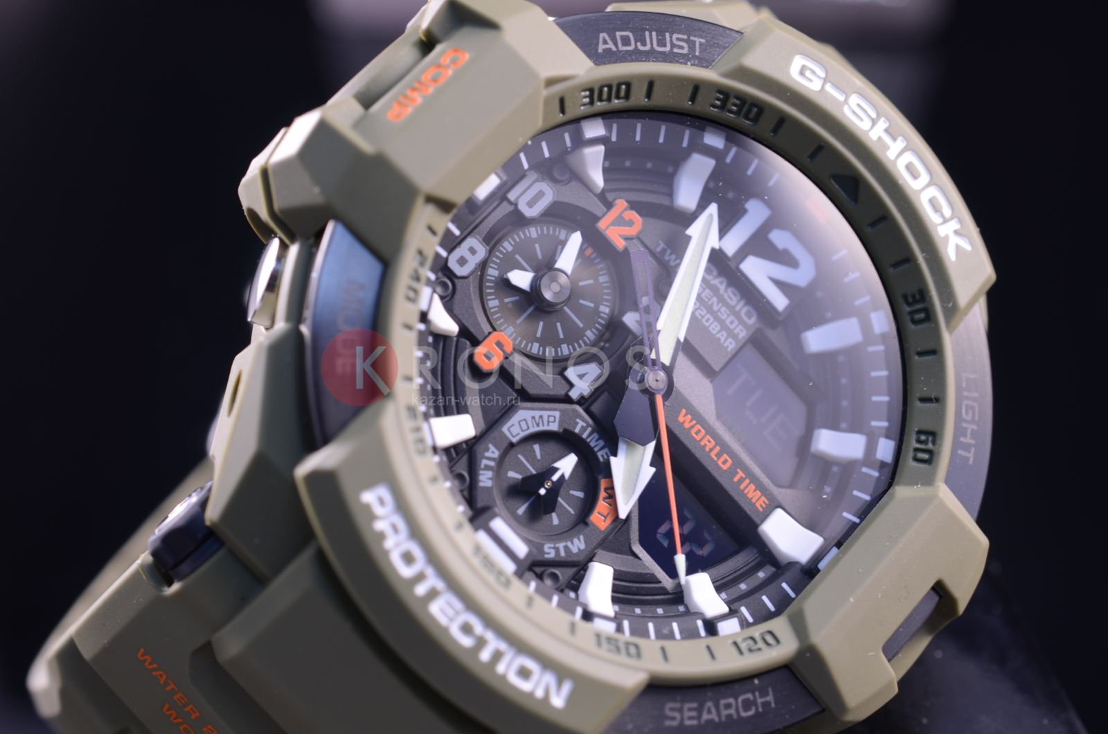 Ударопрочная конструкция защищает от ударов и вибрации. Светящееся покрытие обеспечивает длительную подсветку в темное время суток после короткого воздействия света. Встроенный цифровой компас определяет северный магнитный полюс.
