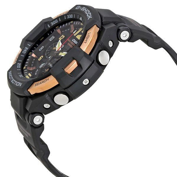 Классические наручные кварцевые мужские часы. Ударопрочный двуслойный круглый корпус часов выполнен из высокопрочной стали с IP покрытием со вставками из пластика. Черный фон циферблата и золотые 3D элементы дизайна. Водонепроницаемость часов составляет 20 ATM (возможны занятия дайвингом). Минеральное стекло, устойчивое к появлению царапин. Часы прочно удерживаются на руке ремешком из черного пластика. Неоновый дисплей Neobrite, будильник, таймер обратного отсчета, функция смещения стрелок, термометр, компас.