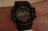Массивный циферблат Big Cases Series™ с ярко-красными элементами великолепно смотрится с чёрным ремешком, сделанным из полимерного материала. Наручные часы имеют пластиковый противоударный корпусУдаропрочный корпусМеханизм заключён в корпус, выполненный из современных материалов, устойчивых к ударам, механическим повреждениям и падению с высоты: инновационный пластик, карбон, нержавеющая сталь, титан., благодаря которому можно не бояться повреждений или случайного падения. Интересной деталью стало колесо прокрутки, с помощью которого легко настраивать время, таймер, будильник. Японский кварцевый механизм получает питание от батарейки, срок службы которой составляет 3 года. Водонепроницаемость 20 бар. Устойчивость к влиянию магнитных полей. Минеральное стекло. Светодиодная подсветкаСветодиодная подсветкаСветодиодная или LED-подсветка обеспечивает появление яркого холодного свечения за счёт LED-элементов - маленьких лампочек. Они потребляют минимальное количество энергии, чаще всего можно встретить 1 светодиод, в нижней части циферблата. оранжевого цвета. Секундомер, мировое времяМировое время Полезное часовое усложнение, отображающее время в основных городах и известных областях по всему миру, оно связано с часовыми поясами, удобно для путешественников и бизнесменов. , календарь до 2099 года, хронографХронографФункция позволяет измерять отрезки времени с особой точностью: часы, минуты, секунды. Верным признаком хронографа является наличие на циферблате 3 дополнительных окошек-счётчиков., UTCUTCВсемирное кординационное время, не имеющее привязки к географическому положению Гринвича, основывается на атомном отсчёте времени. Регулировка времени осуществляется более точно, чем устаревшее GMT.