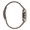 , будильник, мировое времяМировое время Полезное часовое усложнение, отображающее время в основных городах и известных областях по всему миру, оно связано с часовыми поясами, удобно для путешественников и бизнесменов. , секундомер, хронографХронографФункция позволяет измерять отрезки времени с особой точностью: часы, минуты, секунды. Верным признаком хронографа является наличие на циферблате 3 дополнительных окошек-счётчиков., календарь с индикацией текущей даты и месяца. Минеральное стекло устойчиво к возникновению царапин. Водостойкость при давлении 20 бар. Технология . Яркая светодиодная подсветкаСветодиодная подсветкаСветодиодная или LED-подсветка обеспечивает появление яркого холодного свечения за счёт LED-элементов - маленьких лампочек. Они потребляют минимальное количество энергии, чаще всего можно встретить 1 светодиод, в нижней части циферблата.. Стальной браслет с безопасной застёжкой. Золотистое IP-покрытиеIP-покрытиеМетод ионного напыления. Демонстрирует повышенную устойчивость к истиранию, окислению и химическим веществам. Под воздействием высокого давления и температуры около 1500°C молекулы металла надёжно соединяются с частицами корпуса часов.. Габариты: 43,2 x 49,3 x 13 мм.