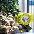 Компактный белый циферблат дополнен контрастными элементами, что обеспечивает отличную читаемость показателей. Модель в жёлтом цвете по достоинству оценят любители спорта и фитнеса, ведь широкий функционал позволяет значительно повысить продуктивность тренировки. Часы оснащены трекером активности (шагомером), мультифункциональным таймером, секундомером, а с помощью технологии BluetoothBluetoothСовременная технология, позволяющая синхронизировать часы с телефоном и переносить данные. Часы с Bluetooth расширяют возможности вашего смартфона и делают его использование ещё более удобным. все данные могут передаваться и анализироваться в специальном приложении для смартфонов G-Shock Connected App. Японский кварцевый механизм с точностью хода +/- 15 секунд в сутки. Срок службы батарейки - 2 года. Функция перемещения стрелок для просмотра показателей с мини-дисплеев. Противоударный корпусУдаропрочный корпусМеханизм заключён в корпус, выполненный из современных материалов, устойчивых к ударам, механическим повреждениям и падению с высоты: инновационный пластик, карбон, нержавеющая сталь, титан. и браслет из надёжного пластика. Светодиодная подсветкаСветодиодная подсветкаСветодиодная или LED-подсветка обеспечивает появление яркого холодного свечения за счёт LED-элементов - маленьких лампочек. Они потребляют минимальное количество энергии, чаще всего можно встретить 1 светодиод, в нижней части циферблата.. Минеральное стекло. Водонепроницаемость 200 метров. ХронографХронографФункция позволяет измерять отрезки времени с особой точностью: часы, минуты, секунды. Верным признаком хронографа является наличие на циферблате 3 дополнительных окошек-счётчиков., автоматический календарь, мировое времяМировое время Полезное часовое усложнение, отображающее время в основных городах и известных областях по всему миру, оно связано с часовыми поясами, удобно для путешественников и бизнесменов. . Габариты: 50,7 x 45,2 x 15,5 мм.