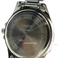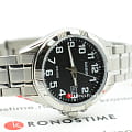 Данную модель наручных часов от Casio отличает удобство и сдержанный дизайн. Прочный, серебристый корпус из гипоаллергенной латуни соединен с браслетом из нержавеющей стали. На черном циферблат расположены временные отметки в виде арабских цифр, для удобства определения времени сделанные в белой расцветке. Благодаря неоновому, светящемуся дисплею определить время в темное время суток не составит труда. Сохранность часов обеспечивается прочным, минеральным стеклом. На дисплее отображается текущая дата. Тип механизма - кварцевый. Вес аксессуара составляет 68 грамм.