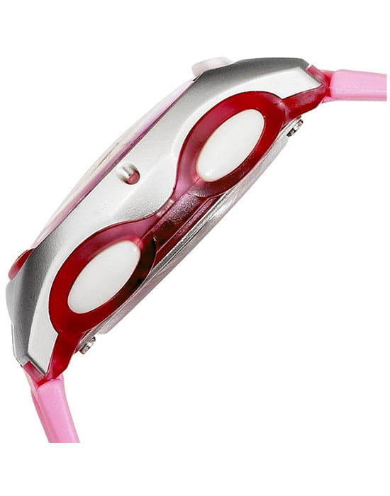 Аккуратный корпус сделан из прочного полимерного пластика. В часах установлен дополнительный циферблат мирового времени, и поэтому их обладатель может следить за временем из второй часовой зоны. Защита часов обеспечивается акриловым стеклом выпуклой формы. Встроенный будильник с настраиваемым звуковым сигналом. Механизм часов - электронный. Срок службы батарейки равен 10 годам. Водонепроницаемость - 50 WR. Вес аксессуара составляет 20 грамм.