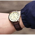 Высокотехнологичный аксессуар обладает строгим стилем и традиционной формой циферблата. Сдержанные, классические цвета и плавные линии позволяют носить часы, не снимая, их универсальность идеально подходит для делового костюма, повседневной одежды или образа для вечернего выхода. Для корпуса использована нержавеющая сталь 316L, за счёт чего достигается повышенная устойчивость к повреждениям и ударам. Надежные часы которые прослужат много лет. Модель комплектуется надёжным механизмом, точность хода которого составляет +/- 20 сек/мес.