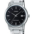 У мужских часов Casio MTP-V002D-1A [MTP-V002D-1AVEF] браслет у модели из долговечной нержавеющей стали, у часов кварцевый механизм, точность хода +/- 20 с/мес, у модели прочное минеральное (кварцевое) стекло, поцарапать такое стекло очень не просто (оно имеет показатель 7 по шкале минералогической твёрдости Мооса), вторым достоинством минеральных стёкол является прочность, разбить такое стекло сложнее чем сапфировое, по этим причинам этот вид стёкол наиболее популярен в часовой индустрии, часы обладают классом водозащиты 30 метров (или 3 атмосферы), поэтому они не испортятся от водных брызг, однако, для плавания не годятся.